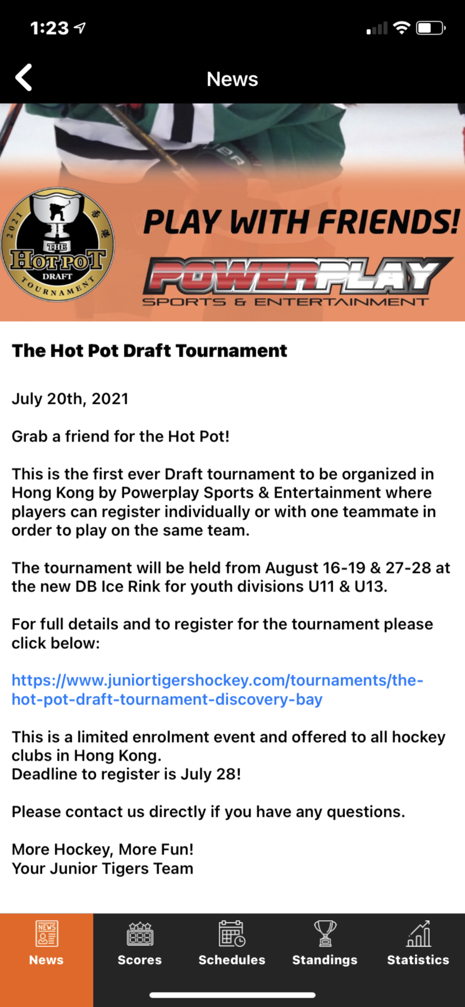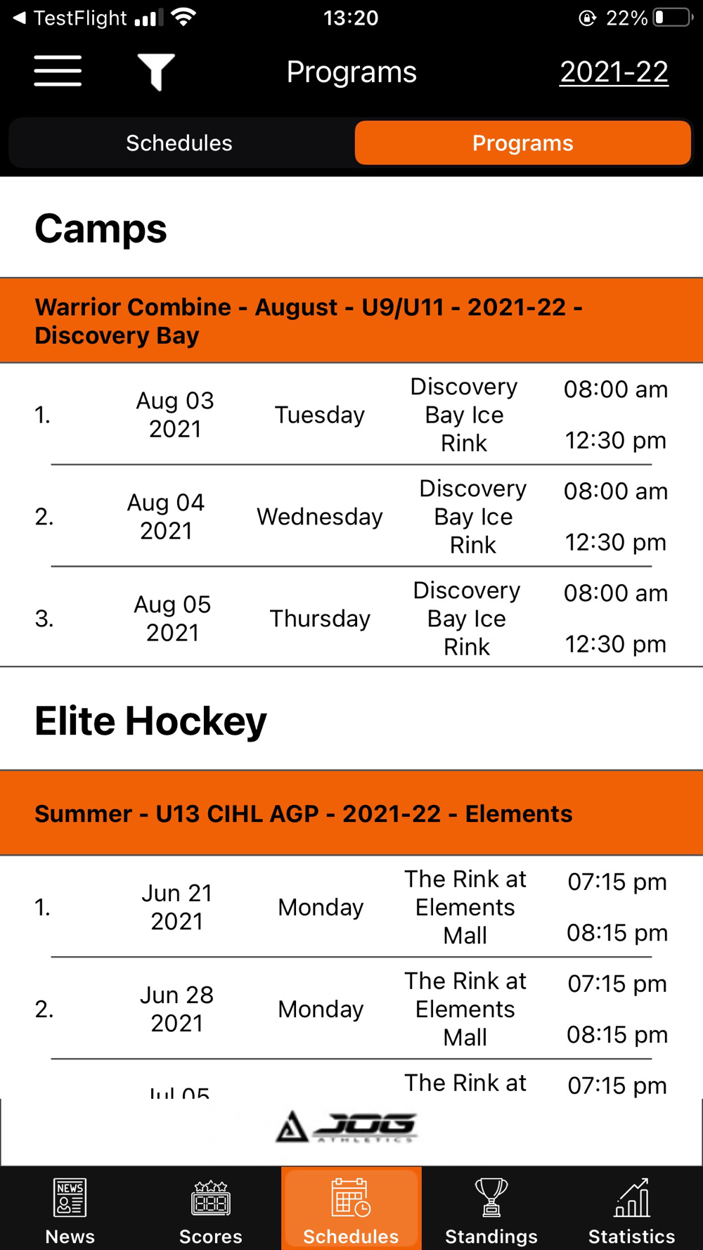 - New ‘Filtering’ feature for Scores, Schedules, Standings, Statistics & Teams pages allowing for specific ‘saved’ view settings- New PROGRAMS feature to see full year dates- Fixed ‘New Event’ feature for saving important dates in calendar- Fixed schedule with next upcoming event featured- Fixed non-working web links in news- Fixed non-working social icons