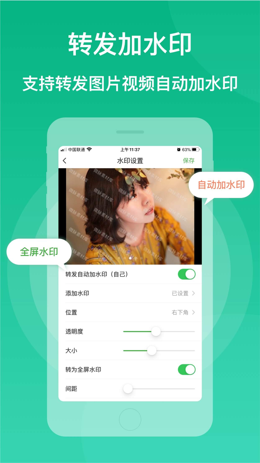 8.支持转发素材自动加水印,包括图片和视频都可以水印;