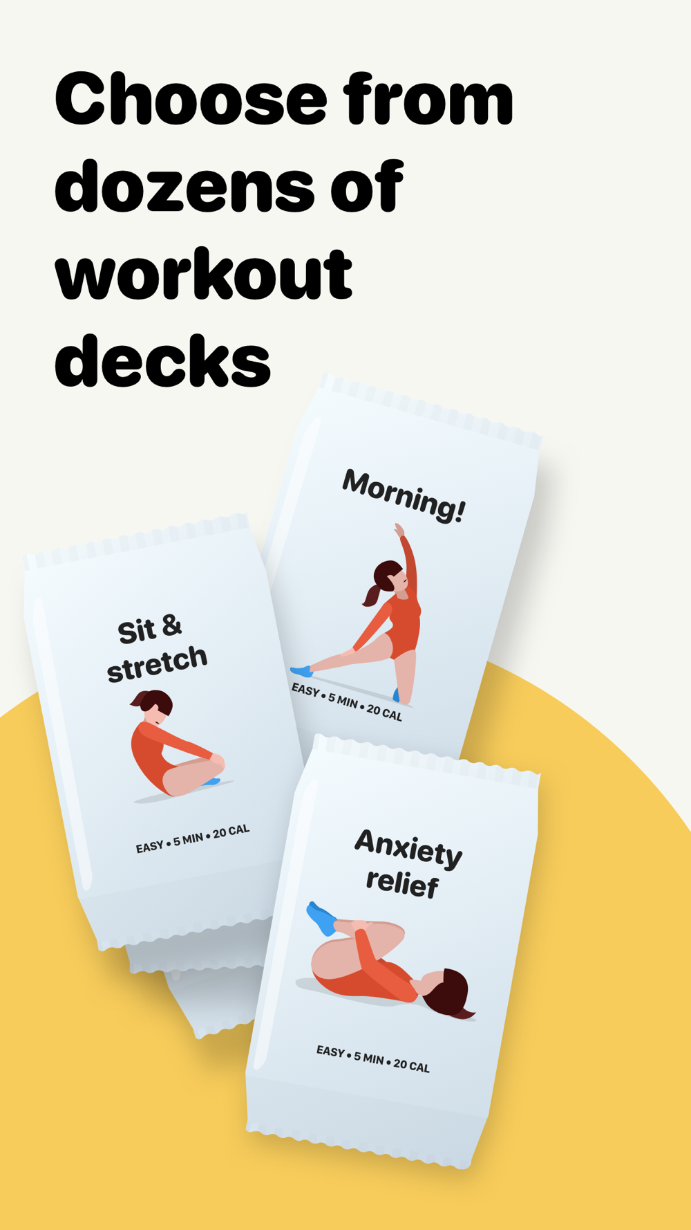 - Choose any of our curated exercise Decks and perform them for a great casual workout