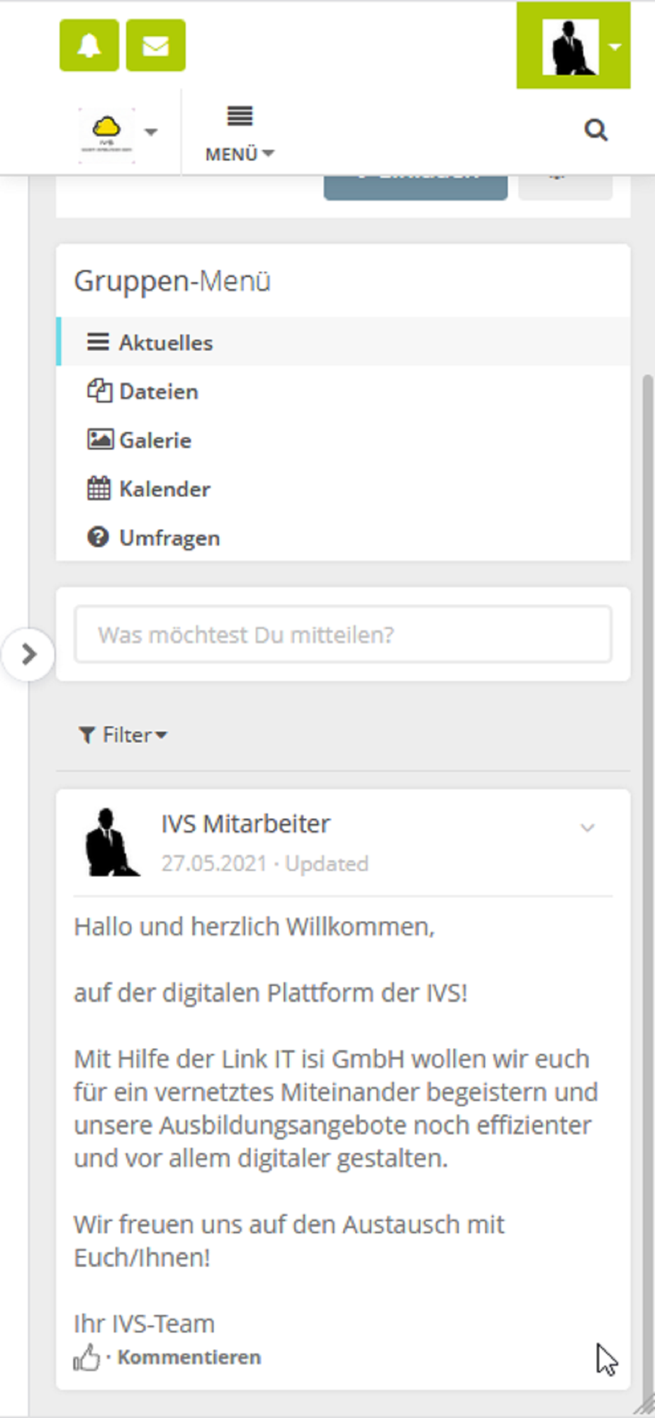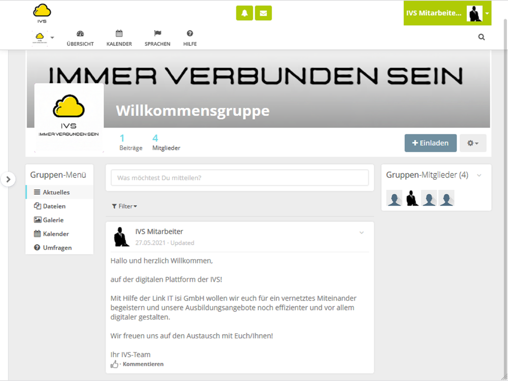 IVS immer verbunden sein ist ein sicheres soziales Netzwerk, dass unseren Mitgliedern eine direkte Kontaktaufnahme ermöglicht. Der Informationsaustausch erfolgt in geschützten Bereichen in Form von Gruppen.