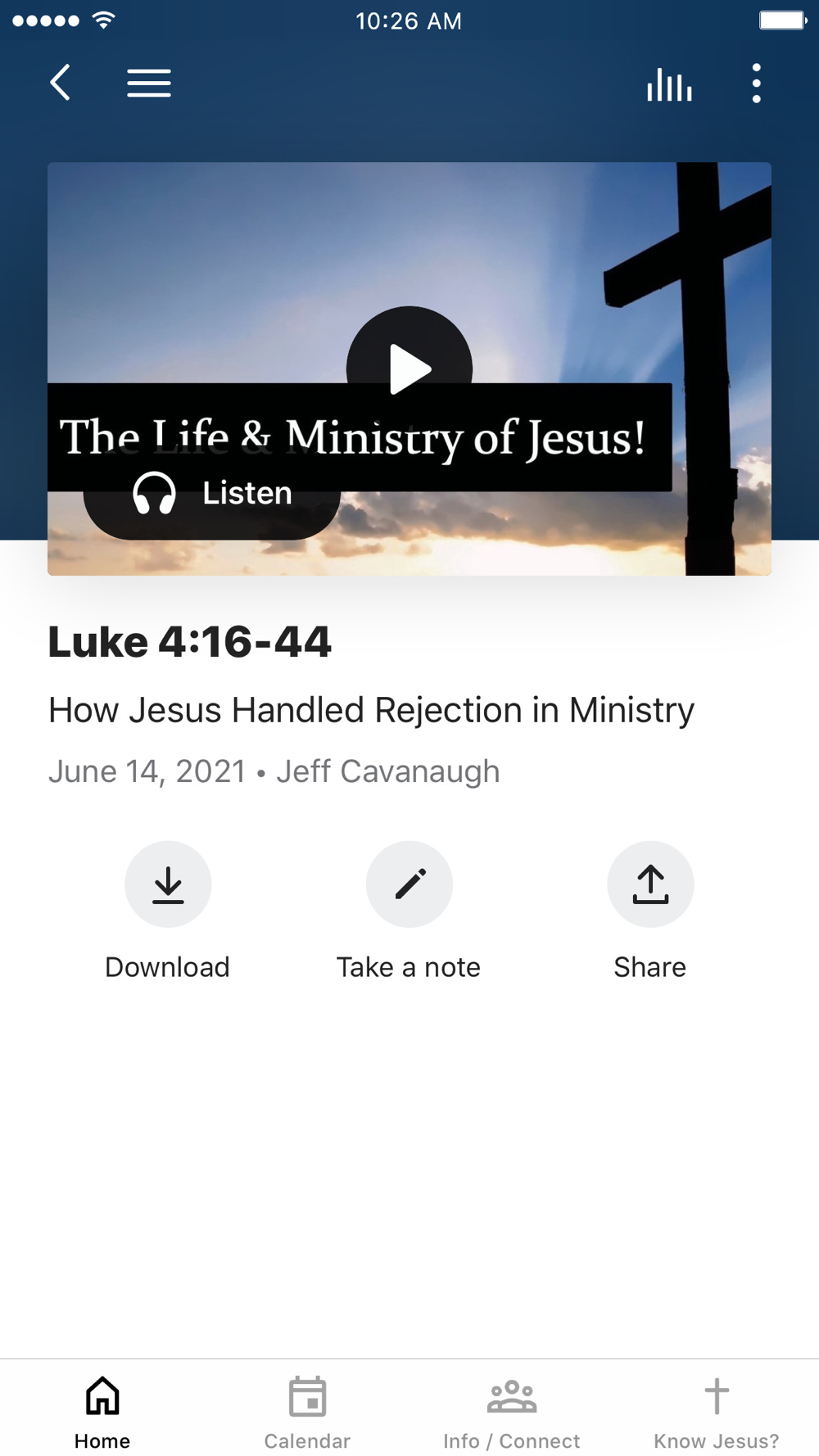 This app will help you stay connected with the day-to-day life of Calvary Chapel Oakdale. With this app you can: watch or listen to past messages; stay up to date with push notifications; share your favorite messages via Twitter, Facebook, or email; and download messages for offline listening.