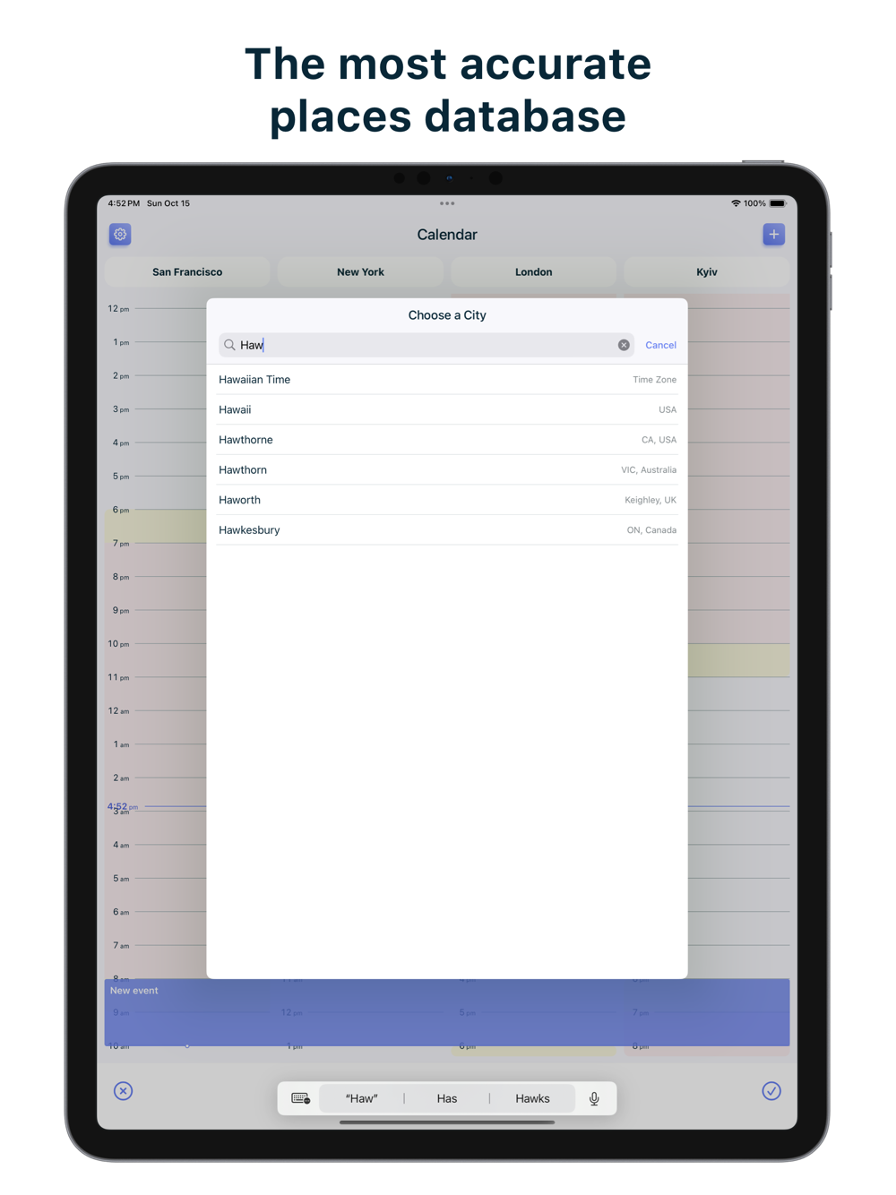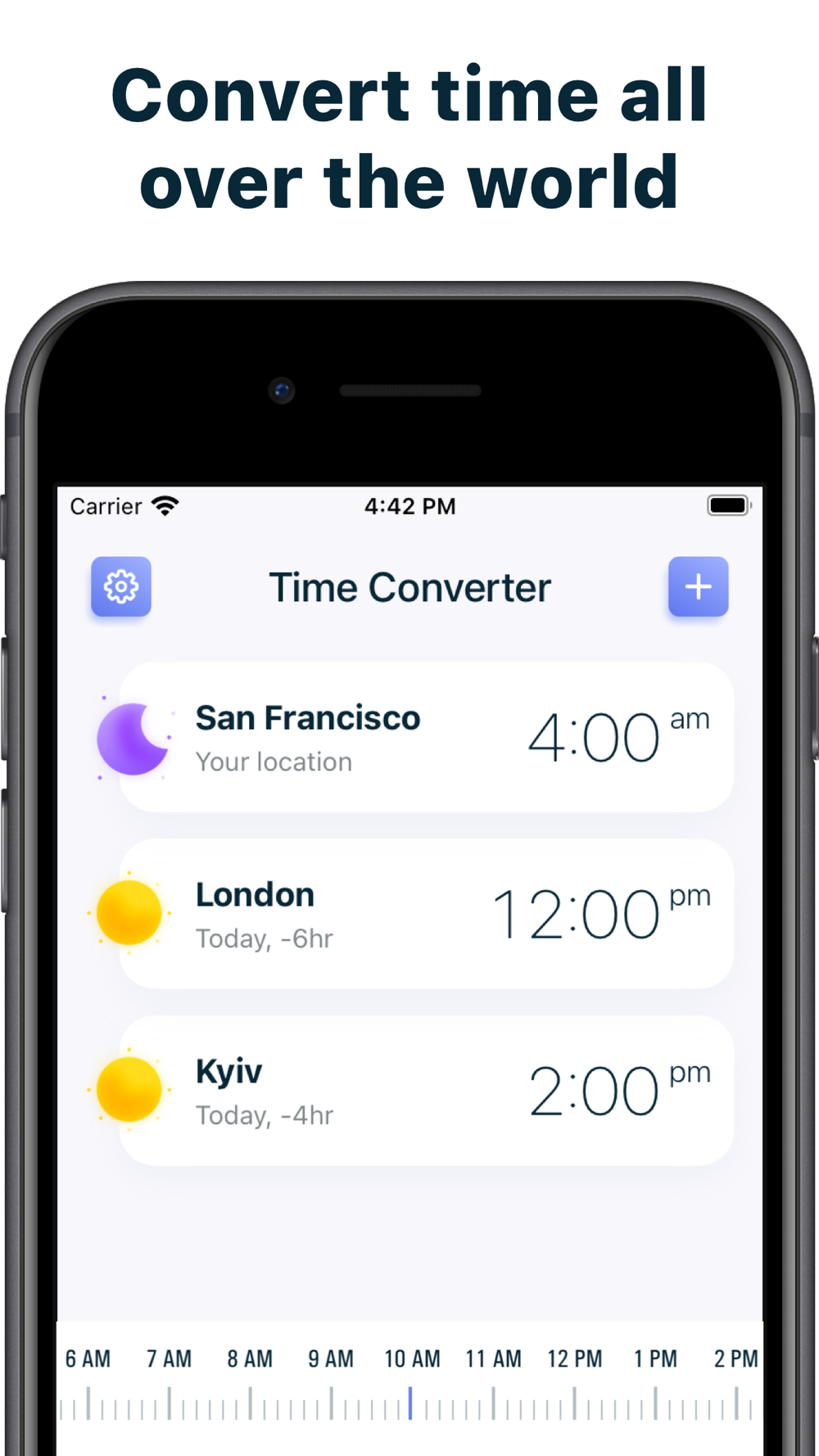World Clock – time zones converter app. Add the location you want and scroll the timeline to check what time will be there. On the calendar screen, you can easily find common working hours for the selected locations.