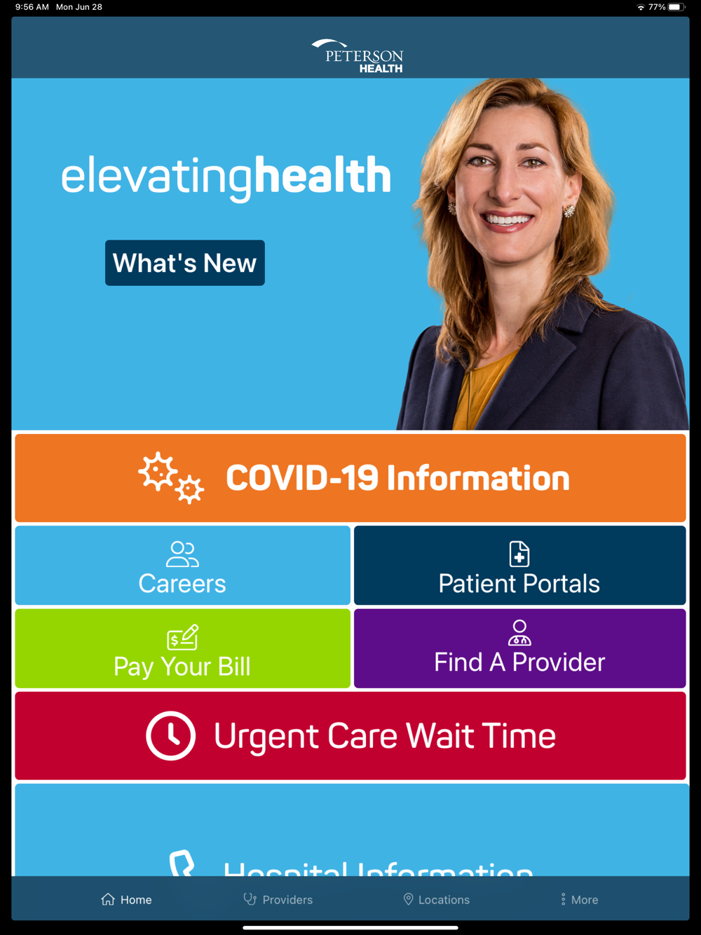 With our Peterson Health app, you can find a provider, clinic/hospital location, and access your patient portal.