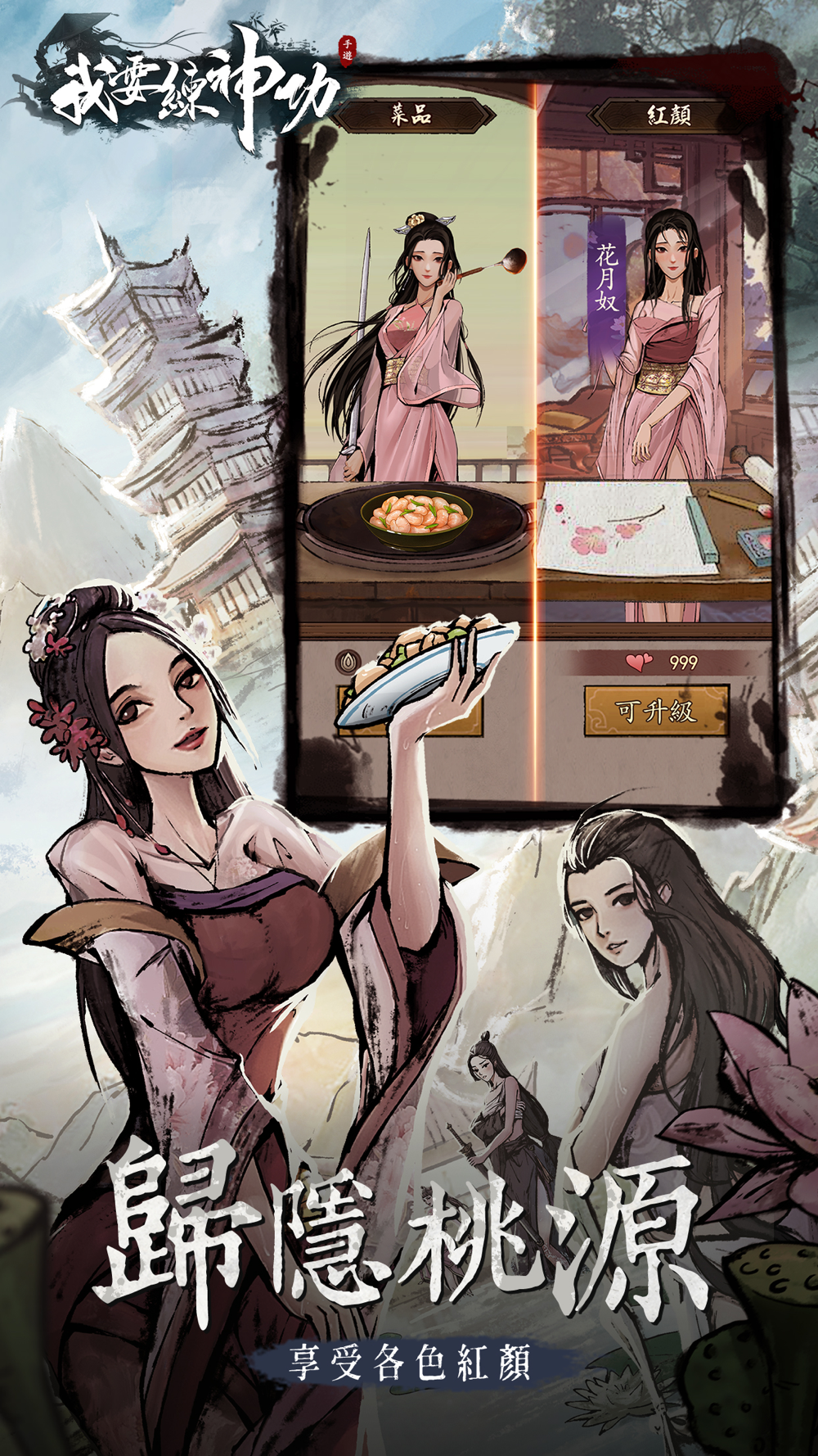 遊戲中各式NPC等你偶遇,有豪客大俠,也有邪派美人,還有本派的小師妹,我要練神功給你一場沉浸式的江湖體驗。更有多位紅顏美女與你碰撞出緣分火花,通過養成各路紅顏、增長戰力、解鎖劇情,尋得紅顏知己陪你闖蕩江湖。還能邀約密會家中紅顏,翻雲覆雨不亦樂乎。