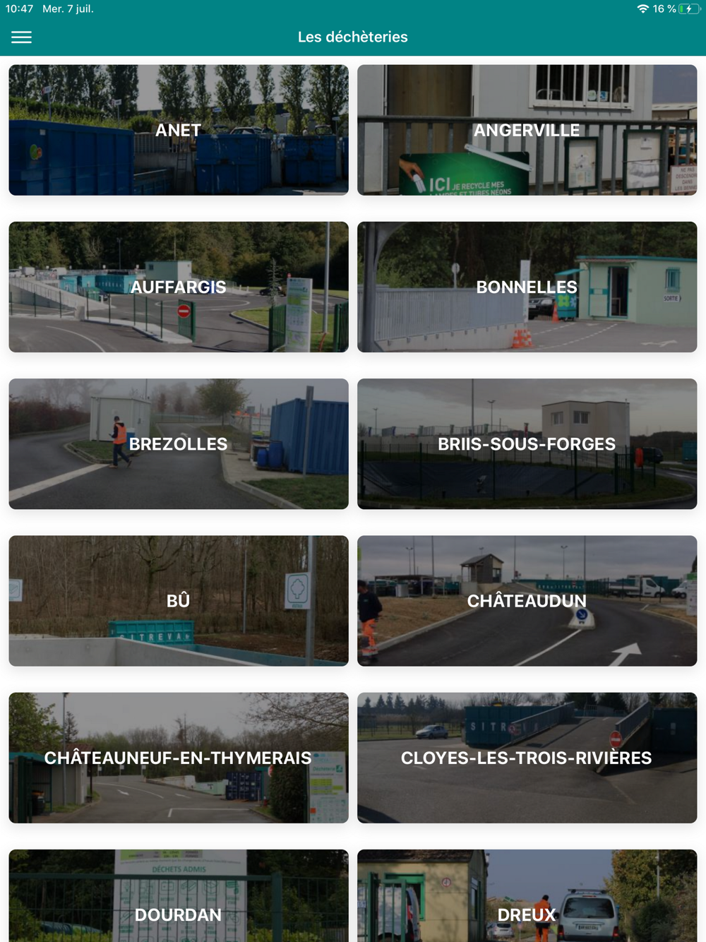 - Possibilité de choisir sa ou ses déchèteries favorites pour recevoir les alertes infos