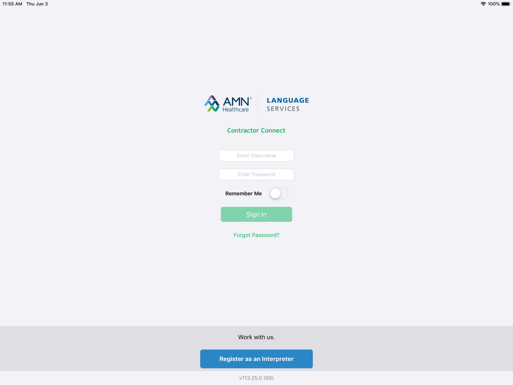 Contractor Connect requires a registration and verification process in order to accept interpreting jobs. You can start the sign up process inside the app.