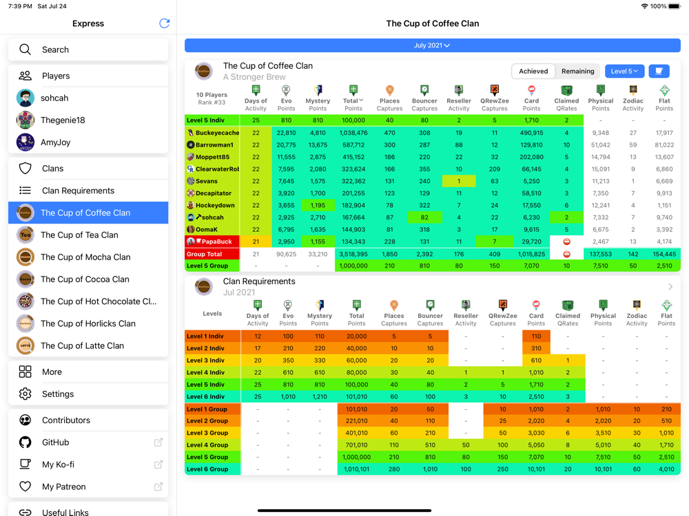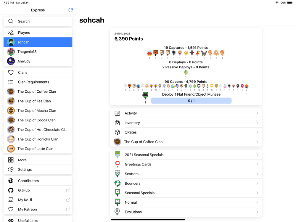 CuppaZee Express is a fast, lightweight and simple app to assist you with your Munzee gameplay! Whether tracking your daily activity to viewing your Clan Progress, to checking what you've got in your inventory, Express shows it all with speed and ease.