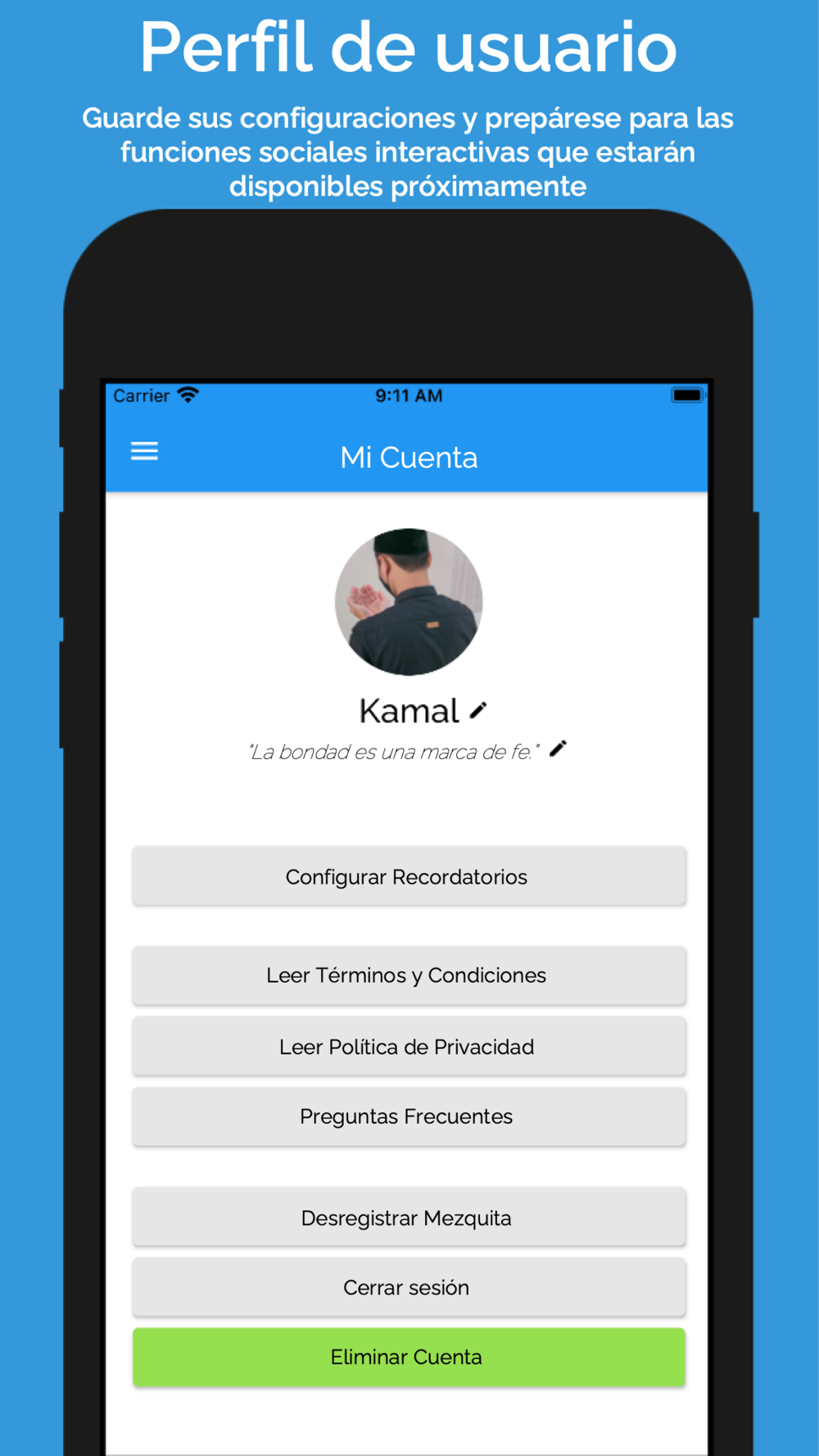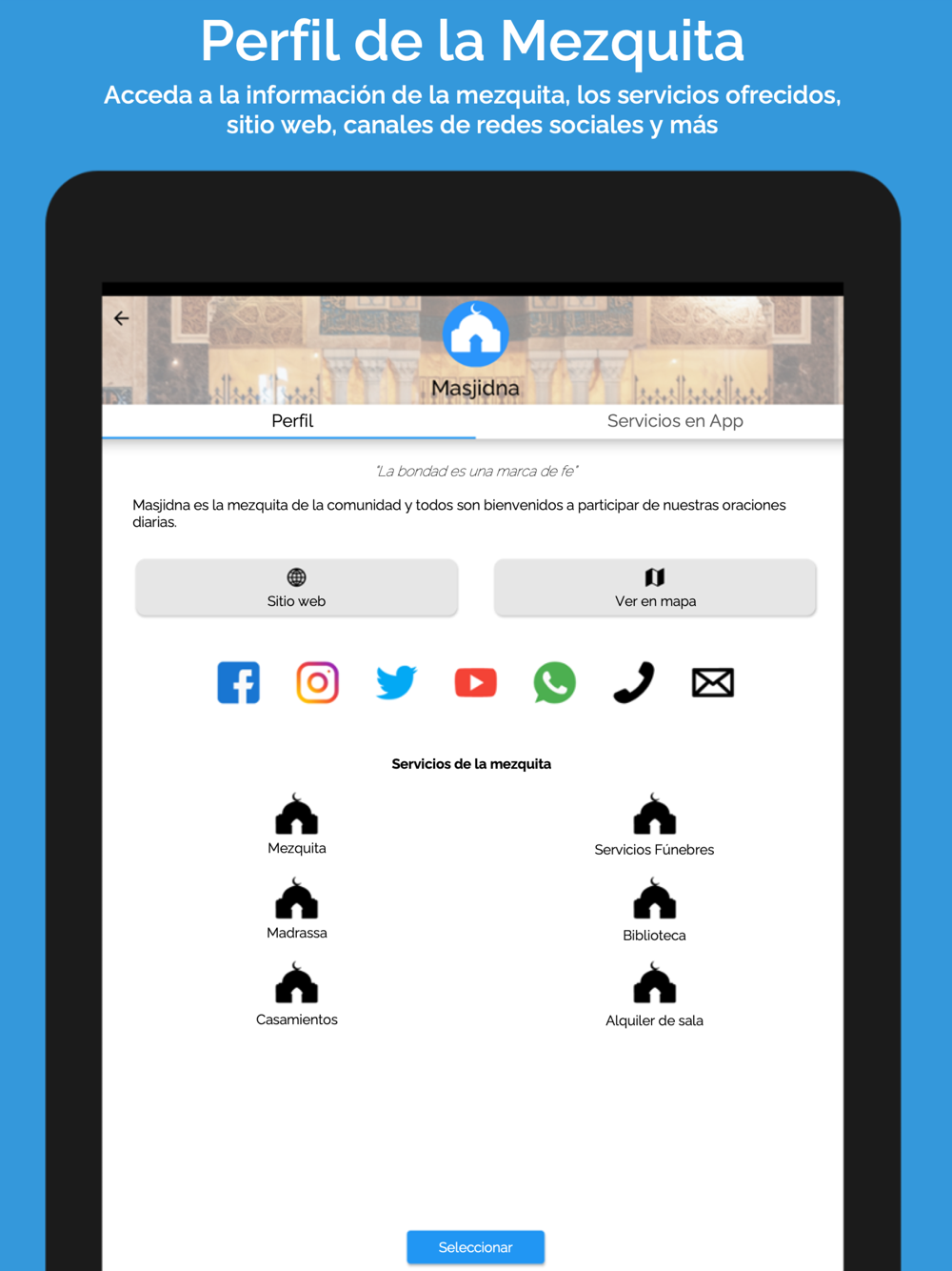 - Acceda a la información de su mezquita, los servicios ofrecidos, el sitio web, las redes sociales y más