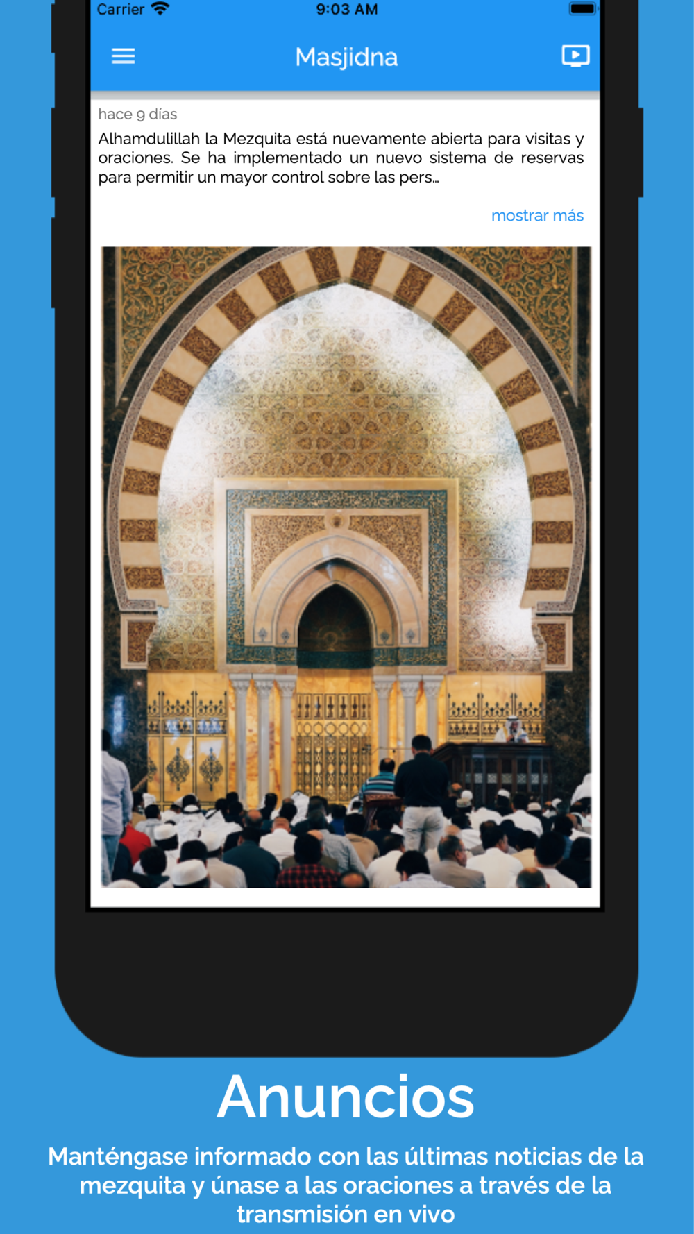 - Manténgase informado con las últimas noticias de la mezquita y únase a las oraciones a través de su transmisión en vivo*