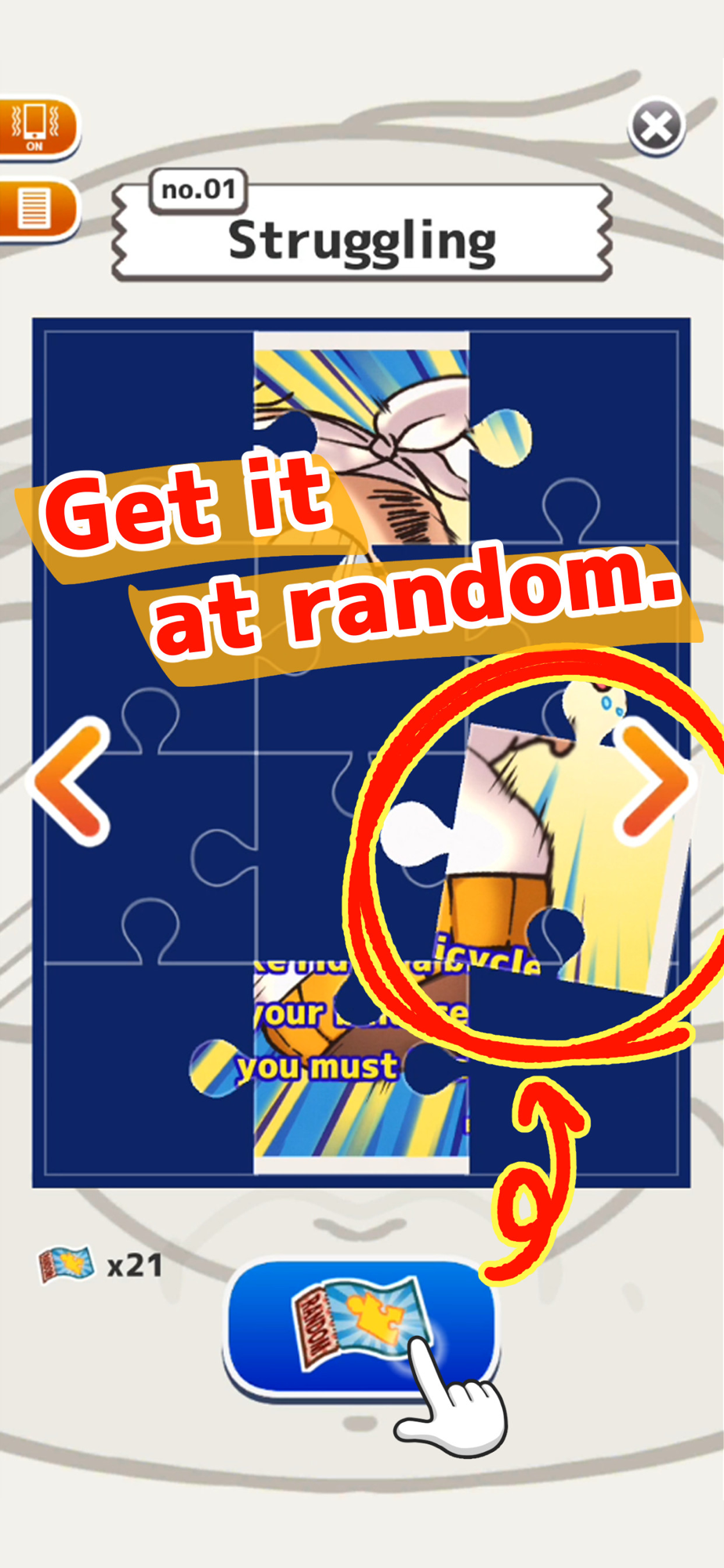 Everytime time you clear a stage, you'll be rewarded with tickets you can use to exchange for specific puzzle pieces.