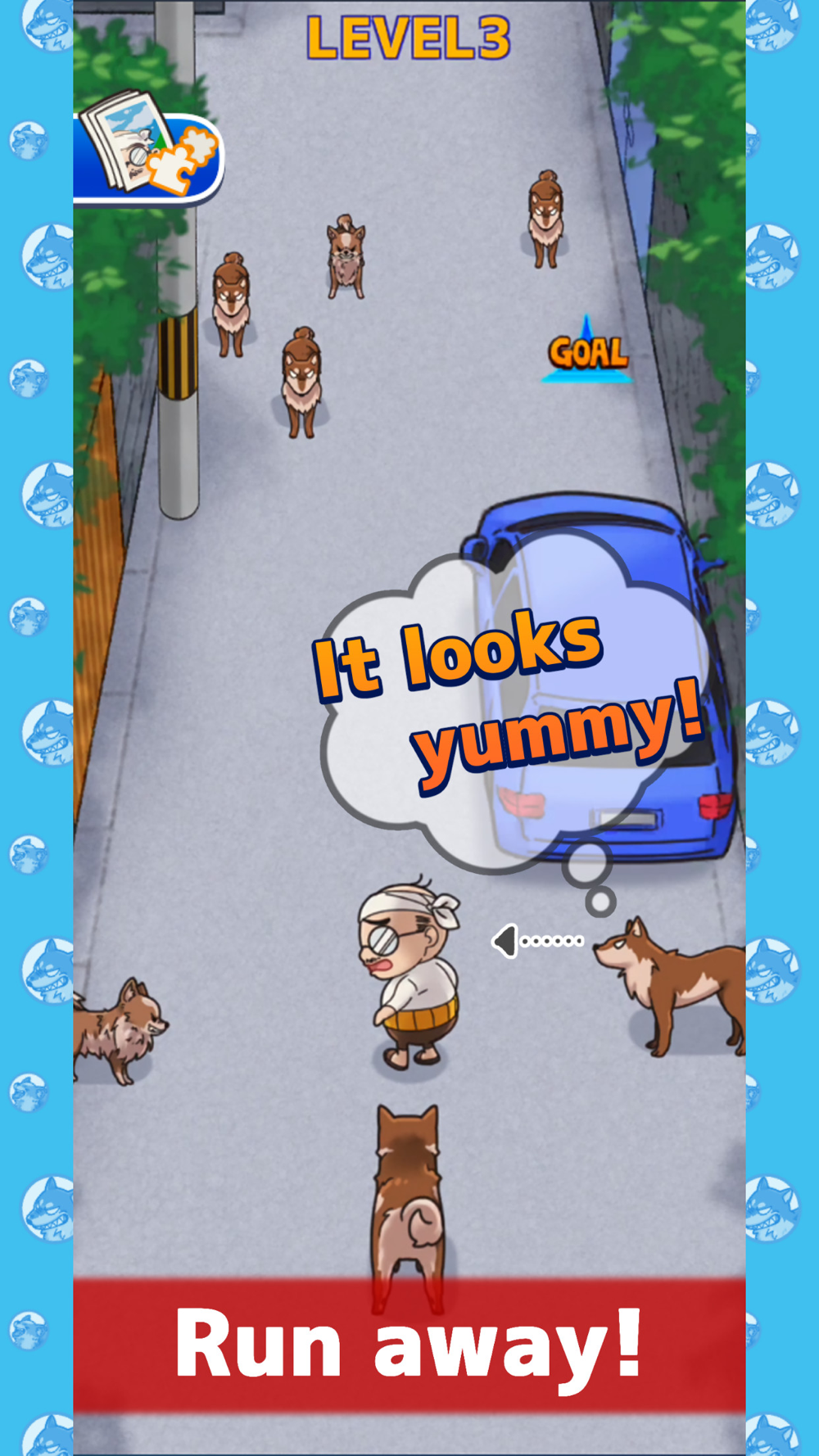 *It's game over if he runs out of stamina or he gets caught by a dog.