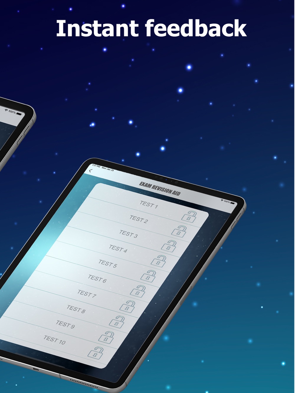 Our app has the ability to offer instant feedback and a final percentage score after every 10 questions completed.