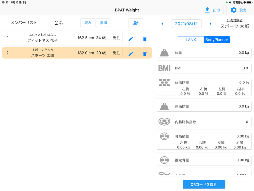 高精度型体組成計ボディプランナーDF870Kの印字レポートのQRコード読み込みに対応