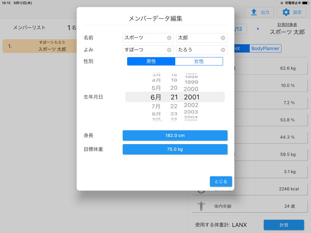 さらに、Sports Sensing社製 多機能バランス体重計「LANX」とBluetoothで連動することで、簡単に測定ができ、体重の左右バランスまで測定することが可能です!
