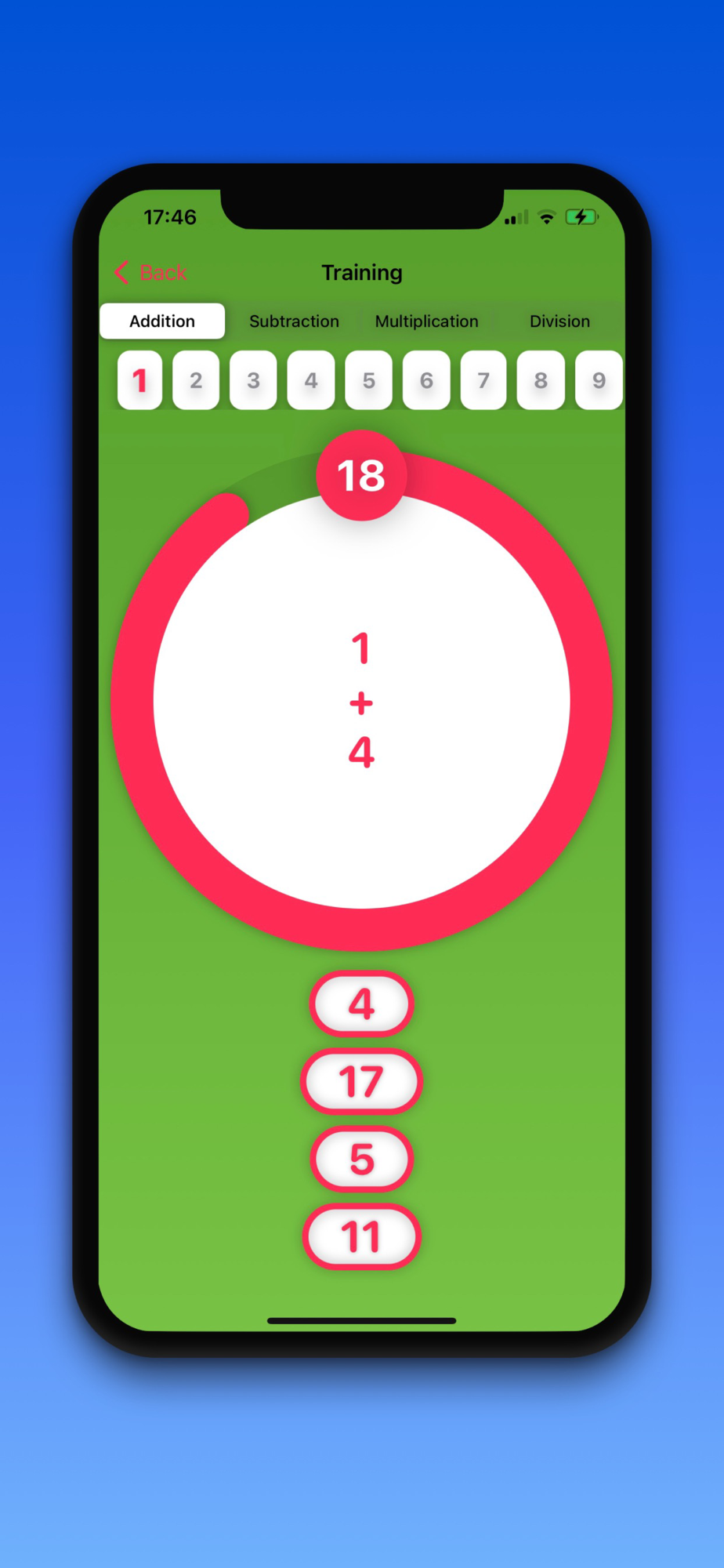 The second mode is on training. In this mode, you can learn or improve 4 operations level by level without time limit.