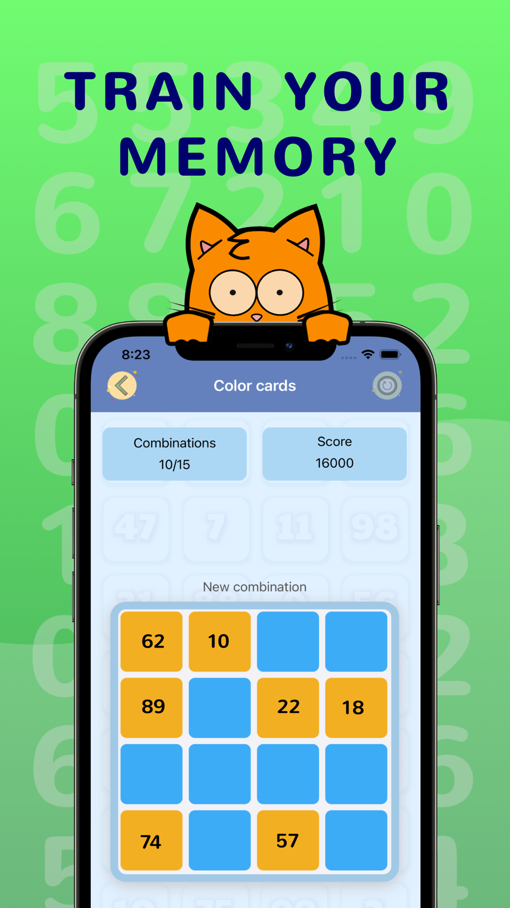 ‘Brain games math’ consists of four different practice training. All training is associated with solving math problems or memorizing combinations. Each training has the ability to modify with varying degrees of difficulty. A timer is set for concentration while exercising on some tasks. Over time, your brain will develop and it will be easier to solve problems each time.