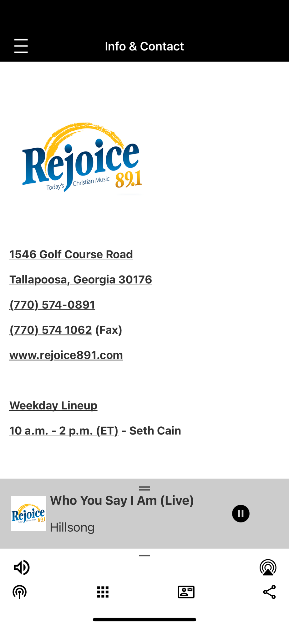 Rejoice 89.1 plays Today\'s Christian Music! You will hear your favorite artists, along with words of encouragement to help make your day stress free! We\'ll also keep you up to date with local news and what\'s going on in the community in West Georgia and East Alabama!