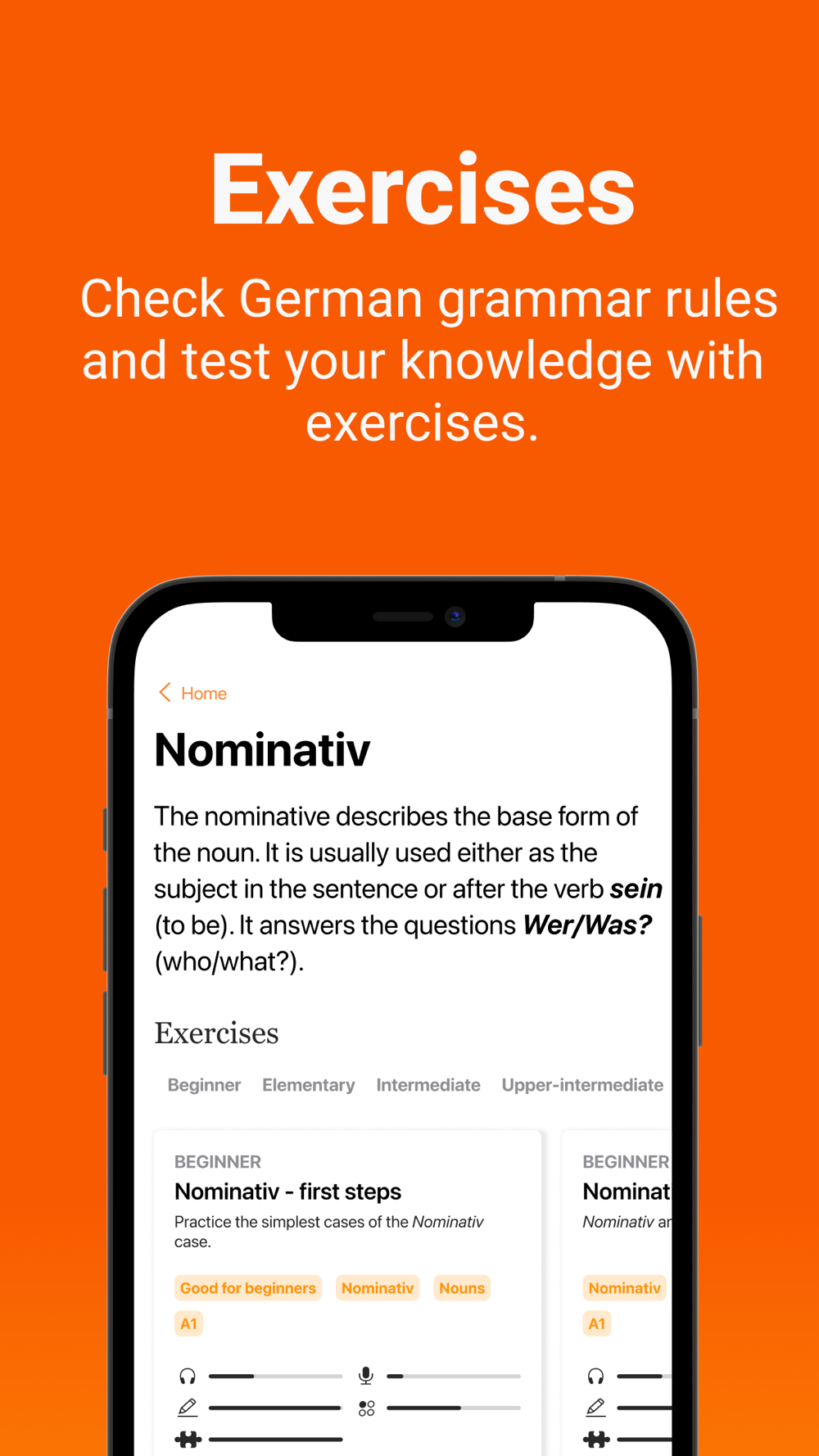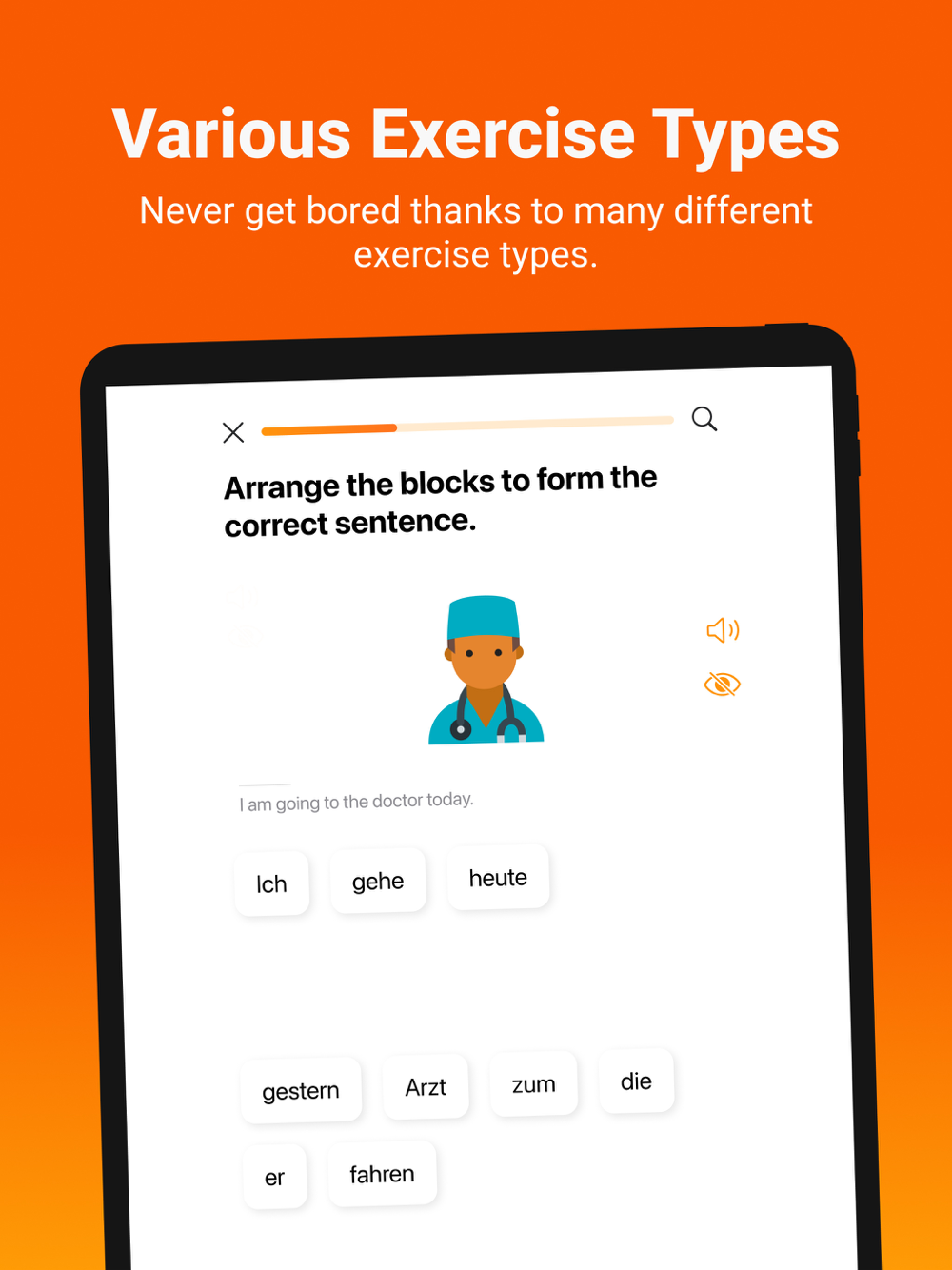 Complete our interactive lessons for a guided experience that allows you to learn all aspects of the German language step by step. Want to focus on your grammar? Alemanzo gives you an in-depth grammar reference that’s packed with exercises to get you speaking and sounding like a local before you know it. If it’s your vocab that needs work, check out our handy flashcard decks and personalize them with interactive images and emojis to make the words stick.
