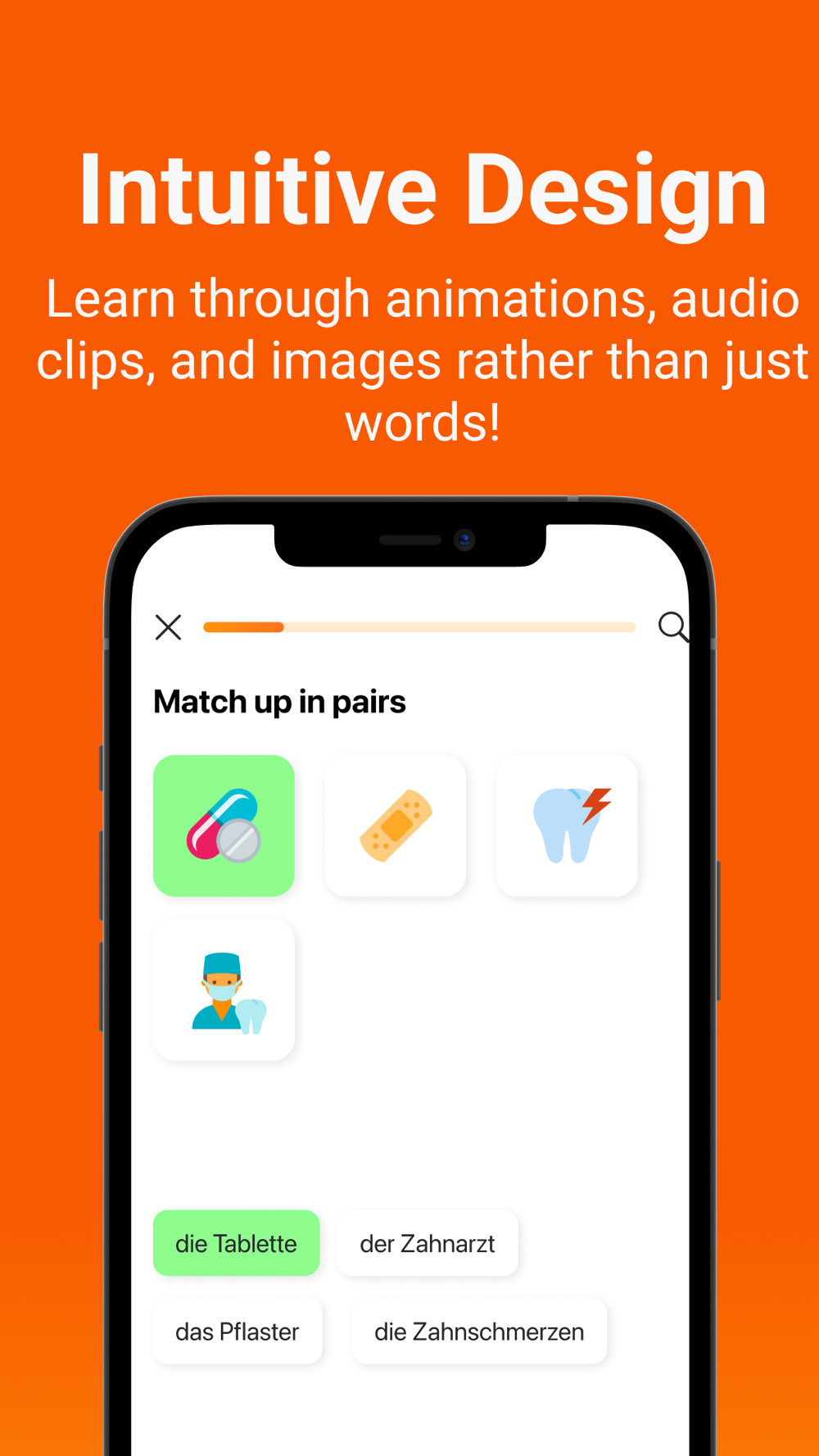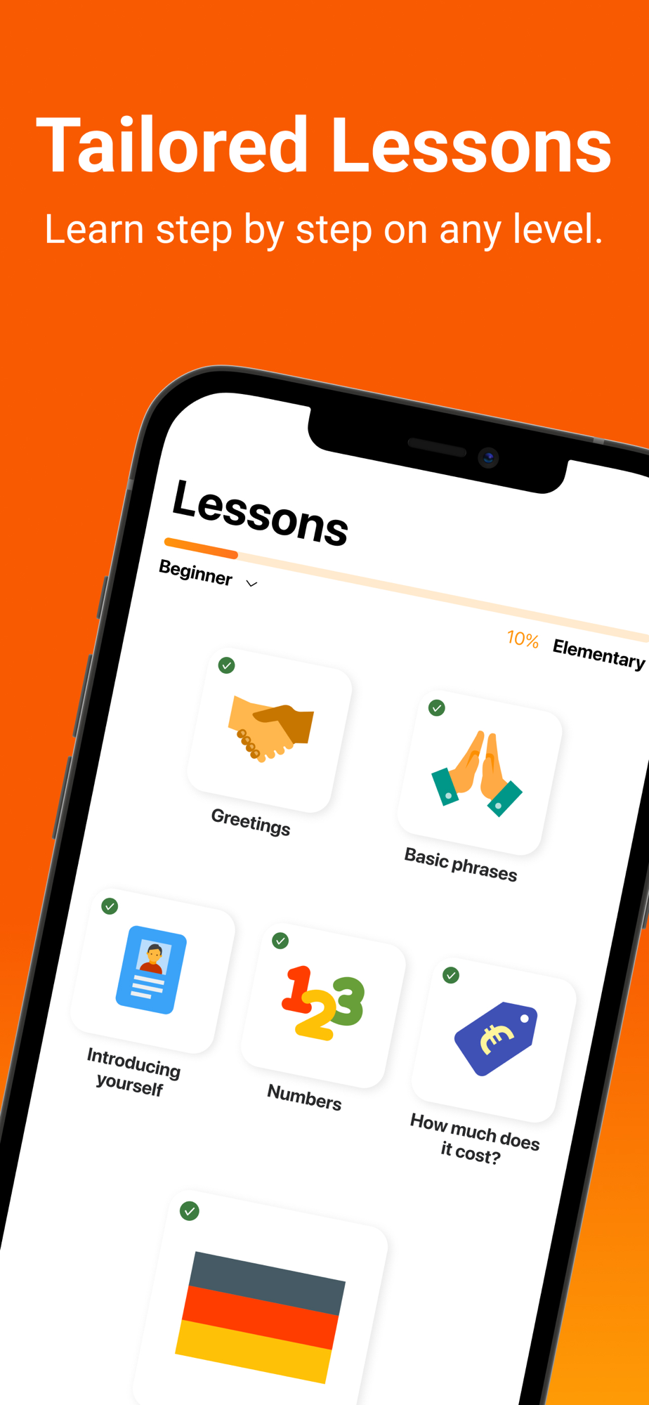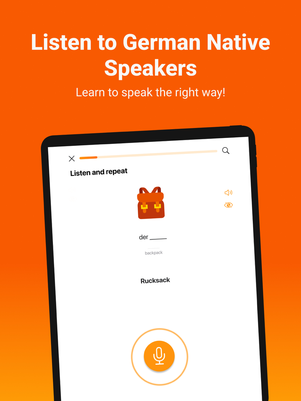 Expand your skills and earn badges the further you progress. We’ll have you speaking, writing and understanding German in no time! Why not start the journey today?