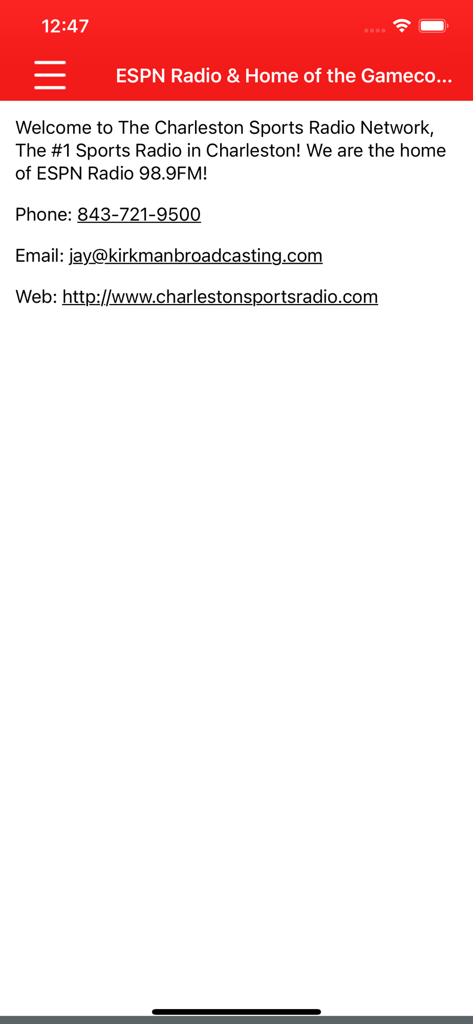 The official app for ESPN 98.9. Charleston, SC WWIK. Kirkman Broadcasting.