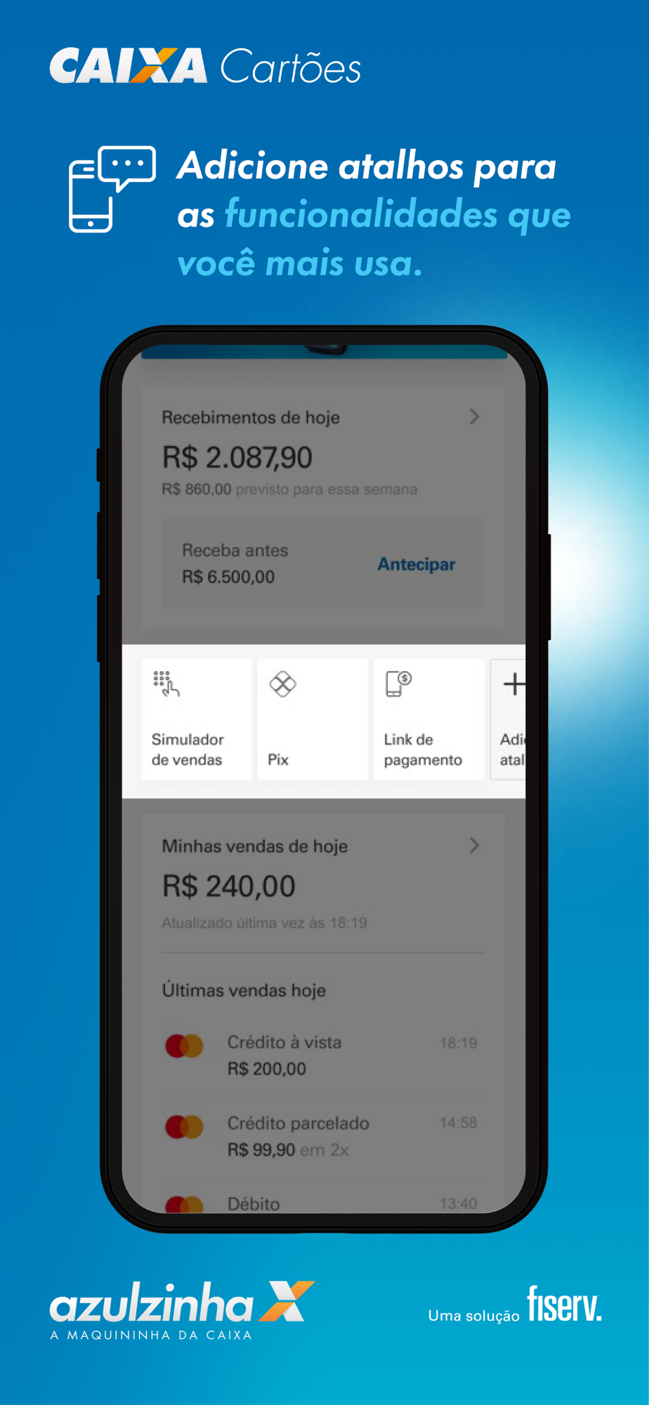 Com o app, você gerencia suas vendas, acompanha pagamentos e recebimentos feitos por cartão de crédito e débito através das vendas realizadas nas máquinas da CAIXA.