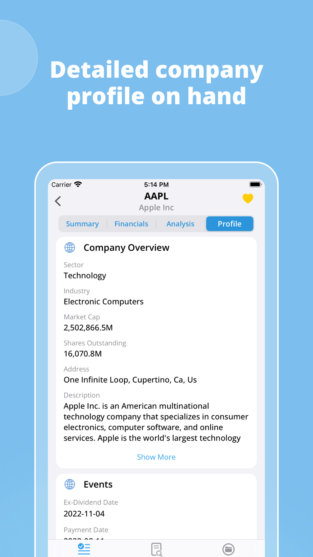 * Company Profile: fundamental information about the company allows you to gain a better understanding before investing.
