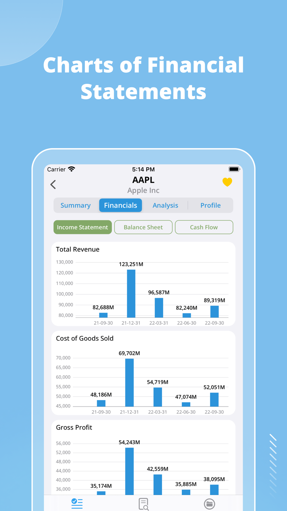 * Financial Data: essential financial ratios and financial statements with accessible charts.