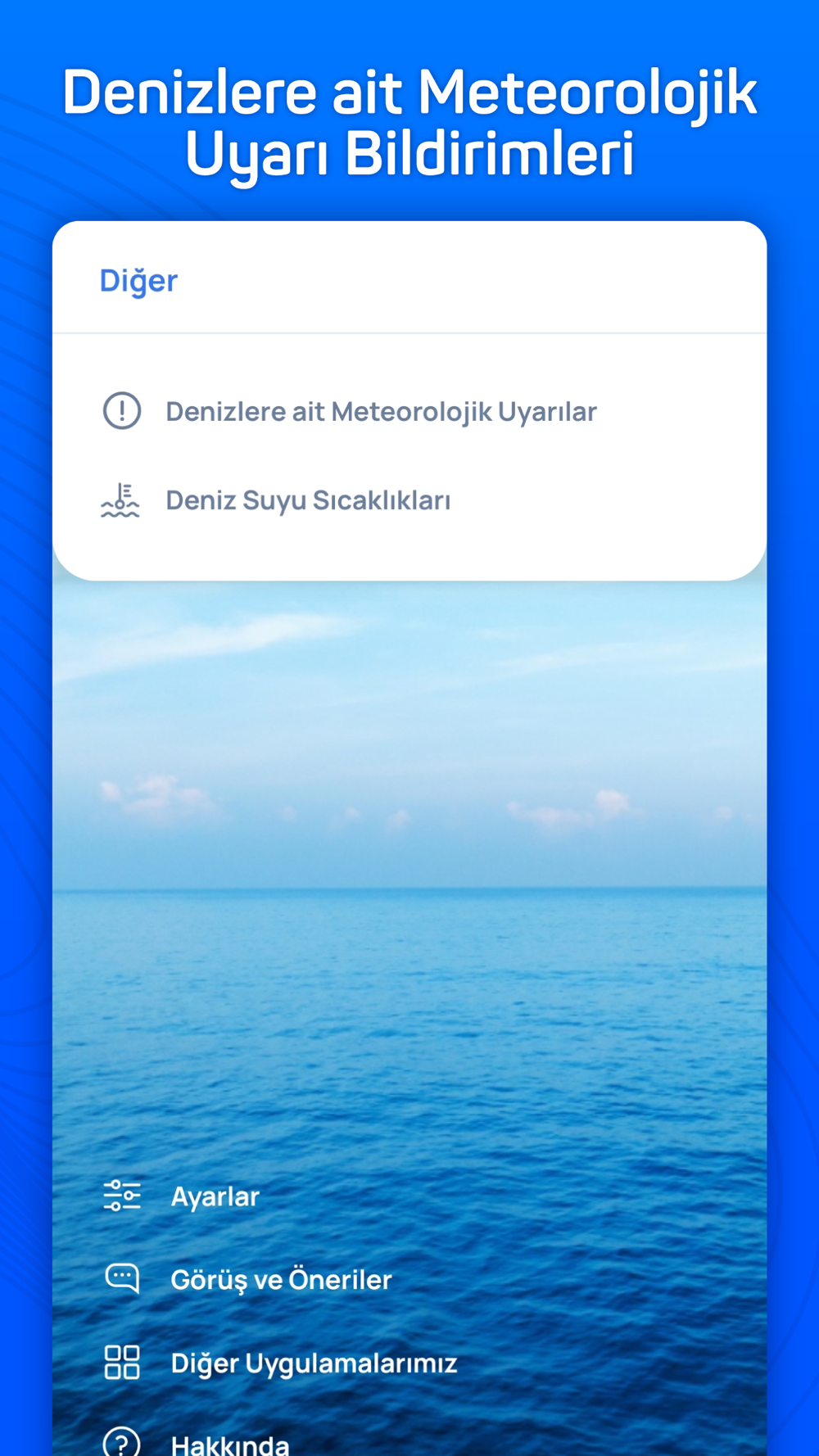 - Denizlere ait Meteorolojik Uyarıların telefonunuza bildirim olarak gelmesini sağlayabilirsiniz.