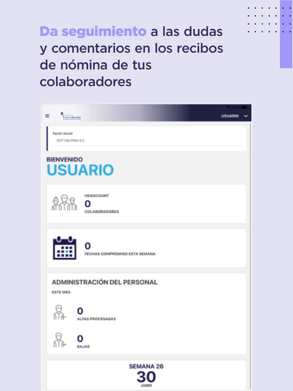 • Dar seguimiento a las dudas y comentarios de los recibos de nómina de tus colaboradores.