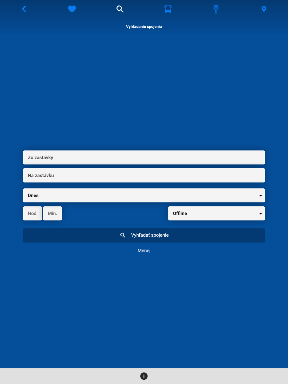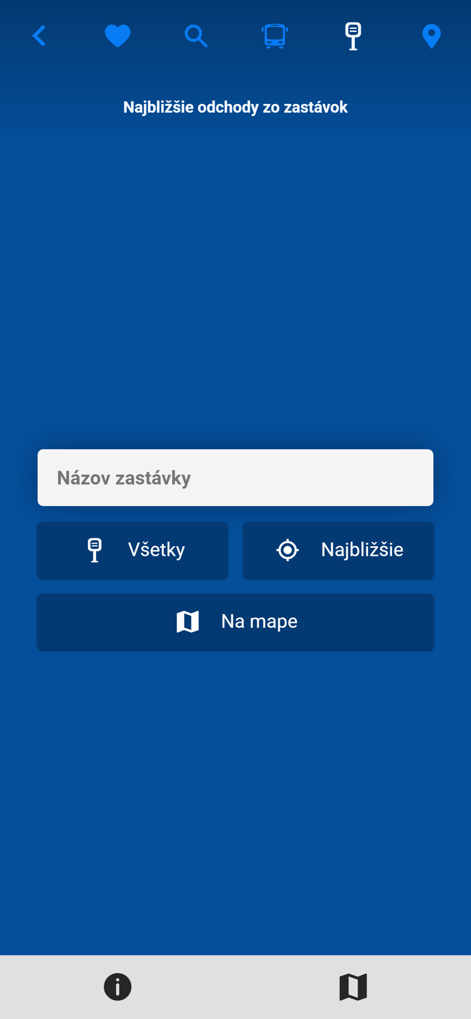 Ulož si obľúbený Bus alebo obľúbenú Zastávku, z ktorej často cestuješ. Odpočet ti ukáže koľko ti ostáva do odchodov obľúbených busov. Ak zmeškáš, nevadí, odpočet začína znova pre nasledujúci spoj. Navyše ak nestíhaš, môžeš si kúpiť aj SMS lístok. O aktuálne cestovné poriadky sa aplikácia postará sama, preto ťa už nezaskočí žiadna zastávka s prelepeným oznamom ;) K dispozícii je aj zobrazenie polohy autobusov/trolejbusov, zastávok a trás liniek na mape. Aplikácia upozorní aj na prípadne výluky a oznamy dopravného podniku.