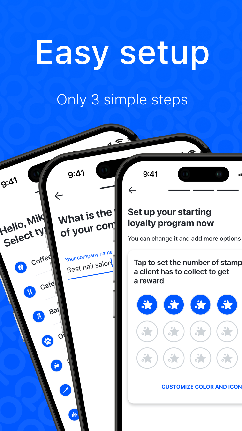 You can easily customize the app's appearance to suit your business needs, including using a color more suitable for your brand identity, choosing a stamp icon, uploading your brand logo, and selecting a reward icon and corresponding name.