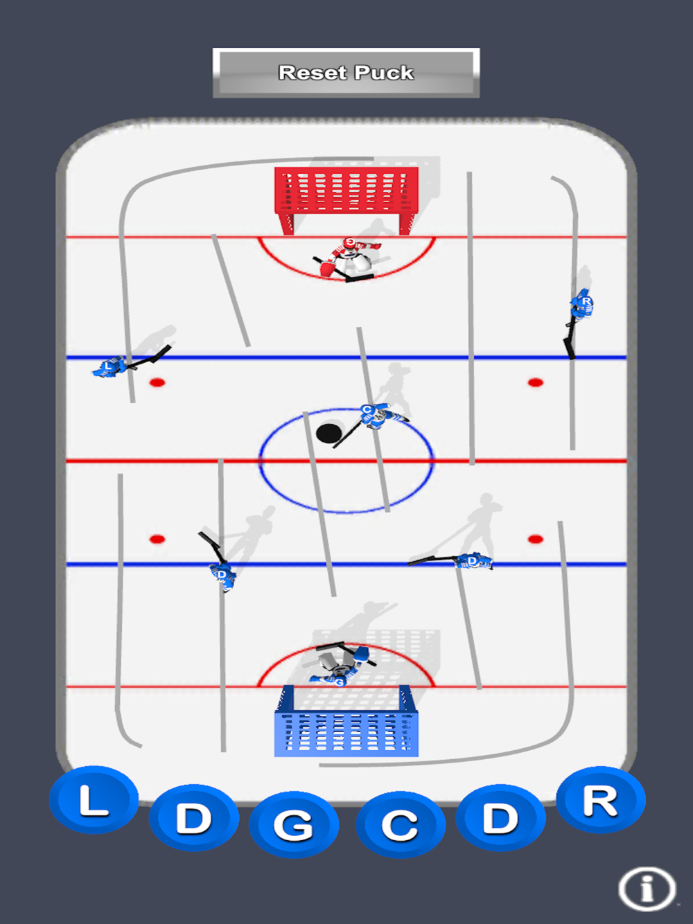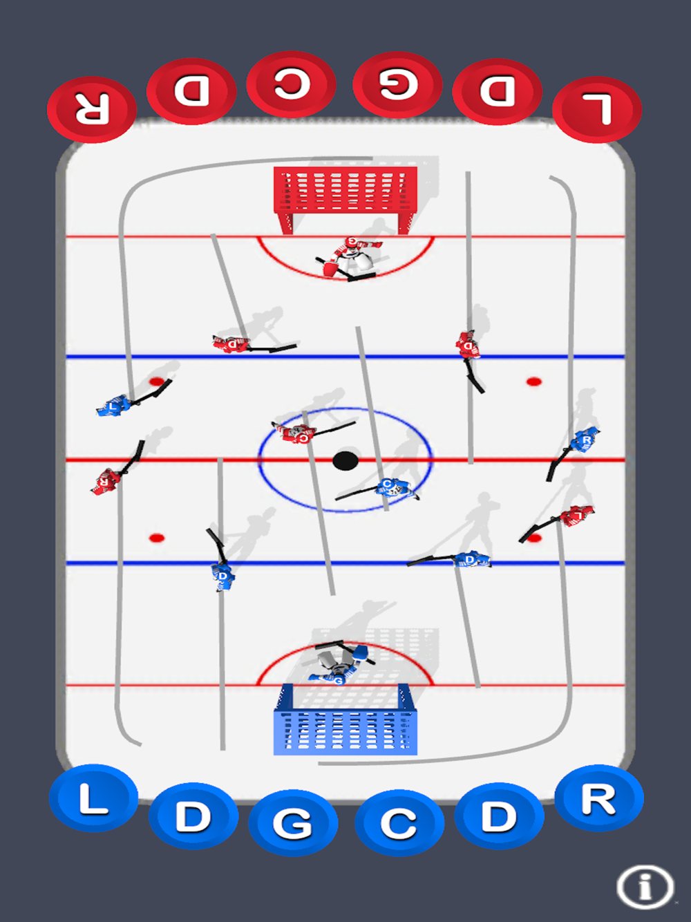 Controls at bottom of screen allow you to move your players forward / backward, pivot to pass, shoot or even steal the puck from an opposing player.