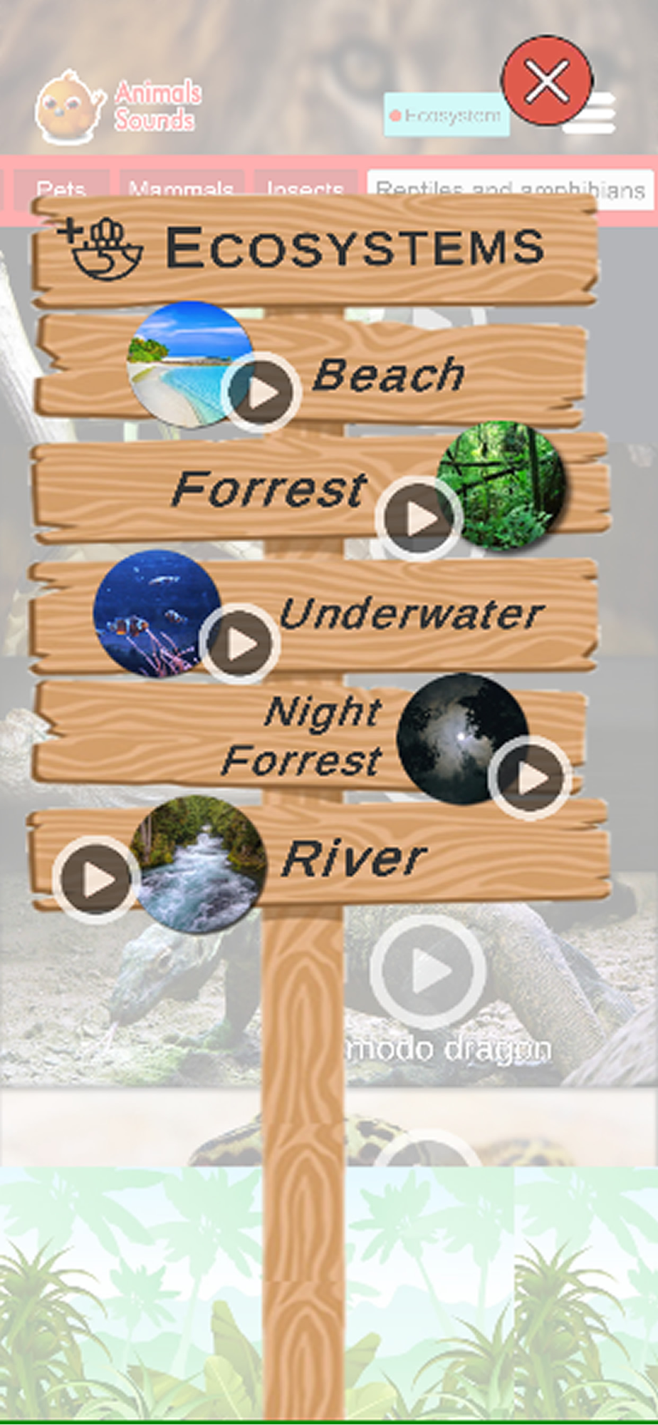 - Combine different ecosystems to set the app while listening to the sounds of animals chosen by you.
