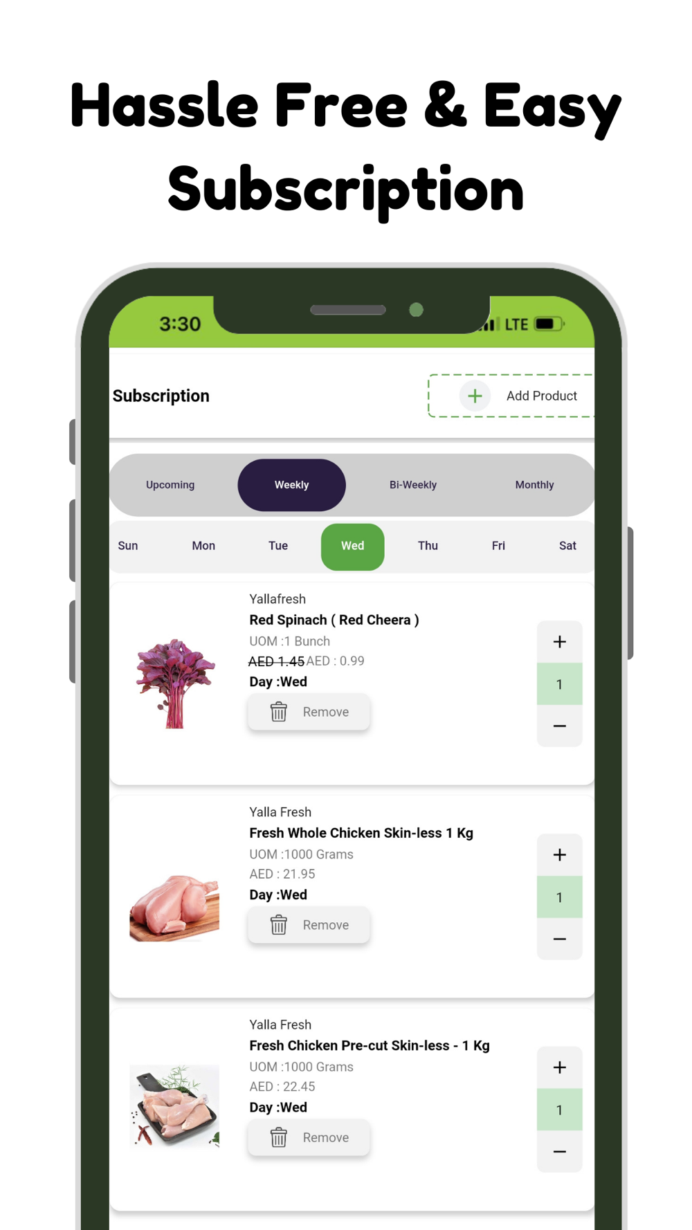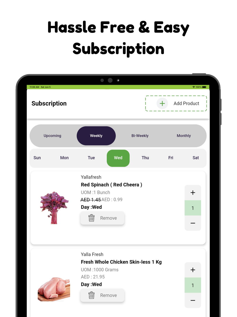 Subscribe & Forget: Customers can subscribe to their essentials & Yalla Basket will deliver the handpicked fruits & vegetables to their doorstep. The experience of grocery shopping is made easy by YallaBasket, where users get hassle-free convenience.