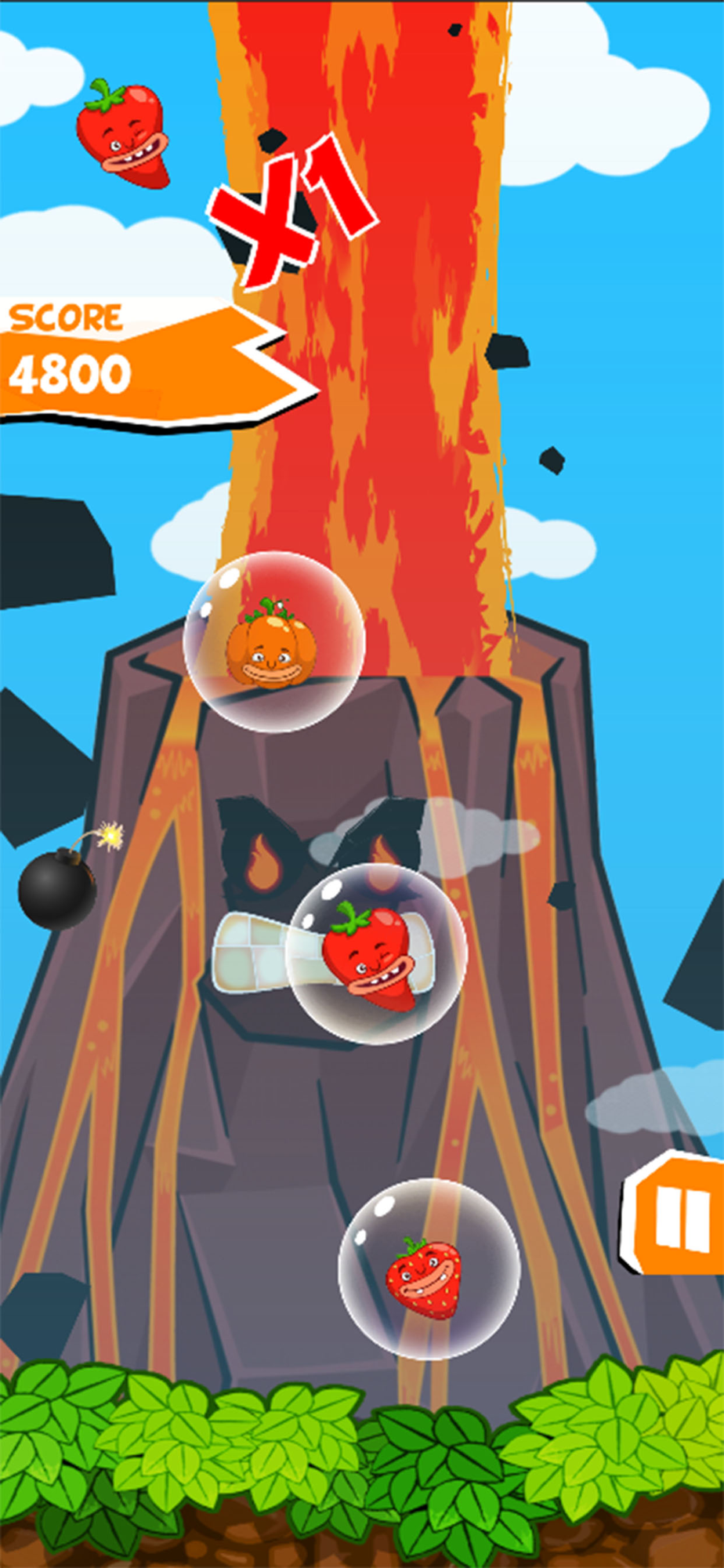 2. Don't touch bomb: If you touch a Bomb all fruits will lose their bubbles and anger the volcano