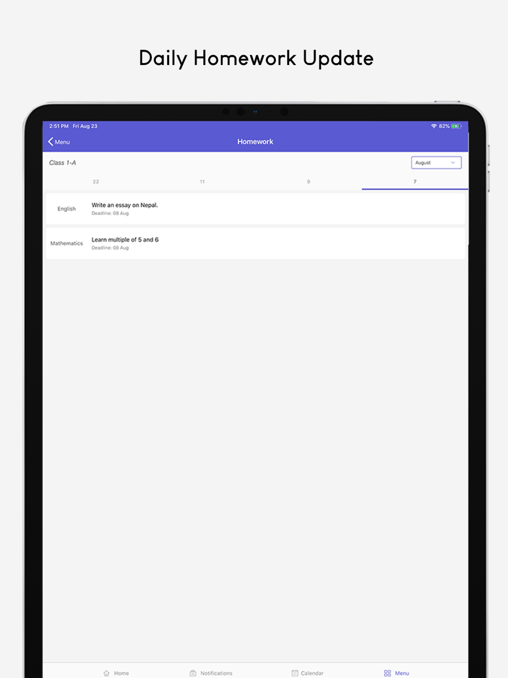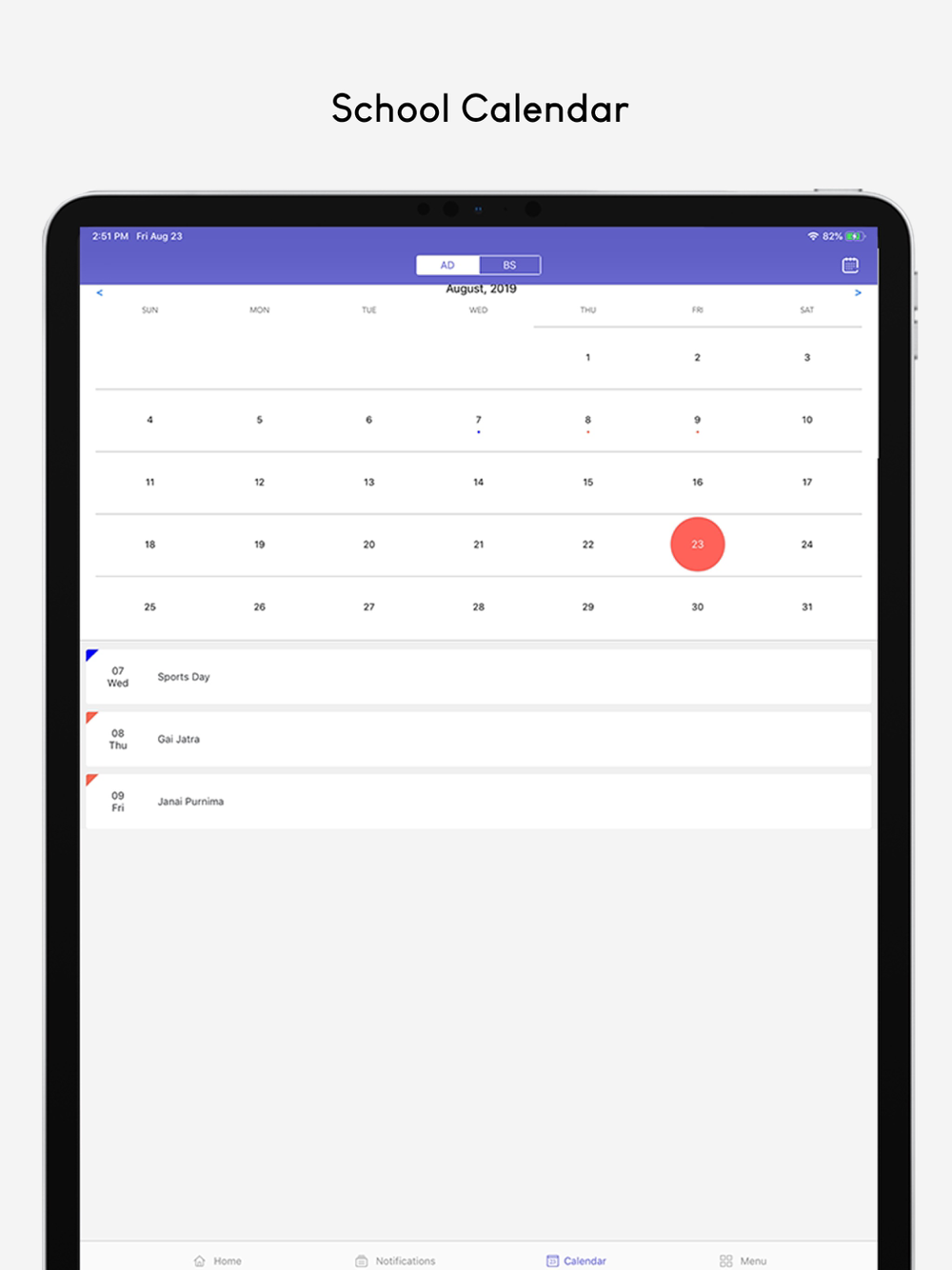 - School/College Calendar to get information on academic days, holidays, celebrations, exams, vacation & all important dates.