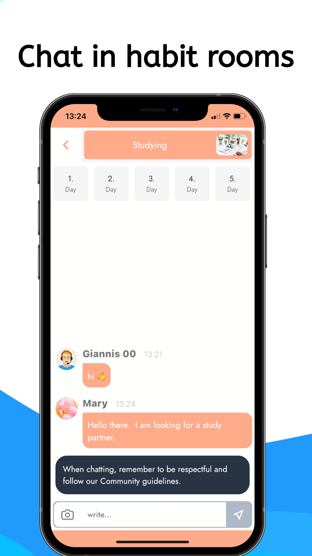 There are more than 10 chat rooms for different challenges in this habit diary app. Additionally, you can ask