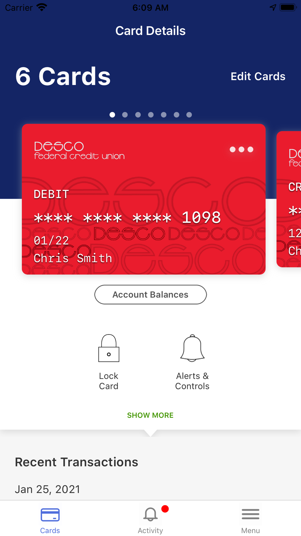 The Desco MyCard app helps you protect your cards by sending you transaction alerts and giving you the ability to define when, where and how your cards are used. Simply download the app to your smartphone, then customize your alert preferences and usage settings to monitor and manage your cards.