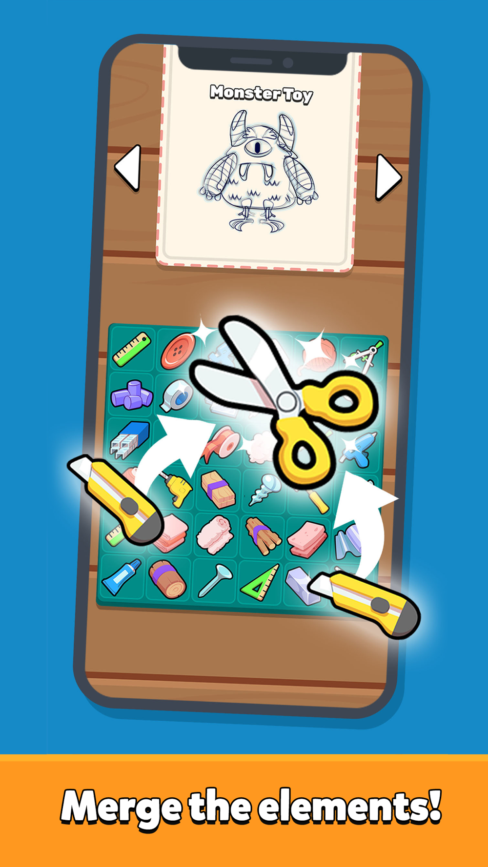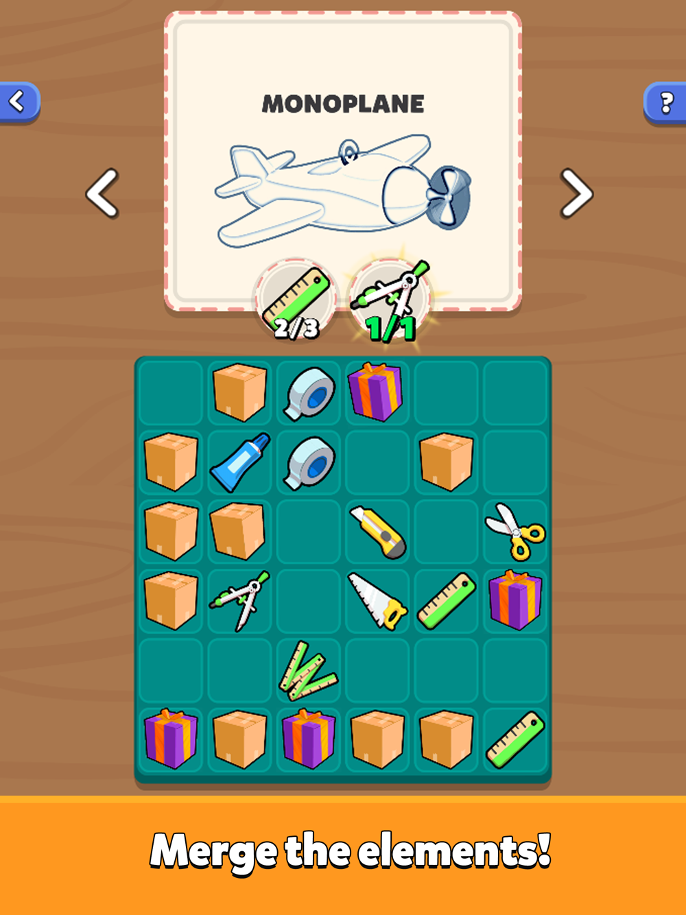 The goal is to collect items that you craft by merging materials. Open the surprise boxes to get new resources. Merge two equal materials to create higher level ones.