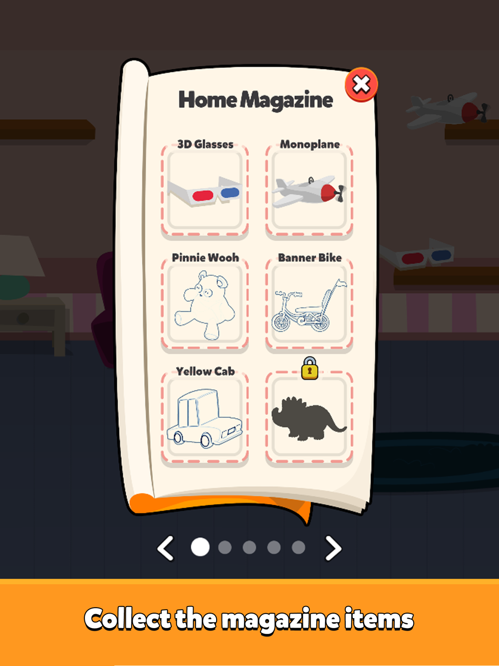 Collect the items from the Home Magazine and place them in the room as you like. Once you fill it out, you will have a new empty room to discover.