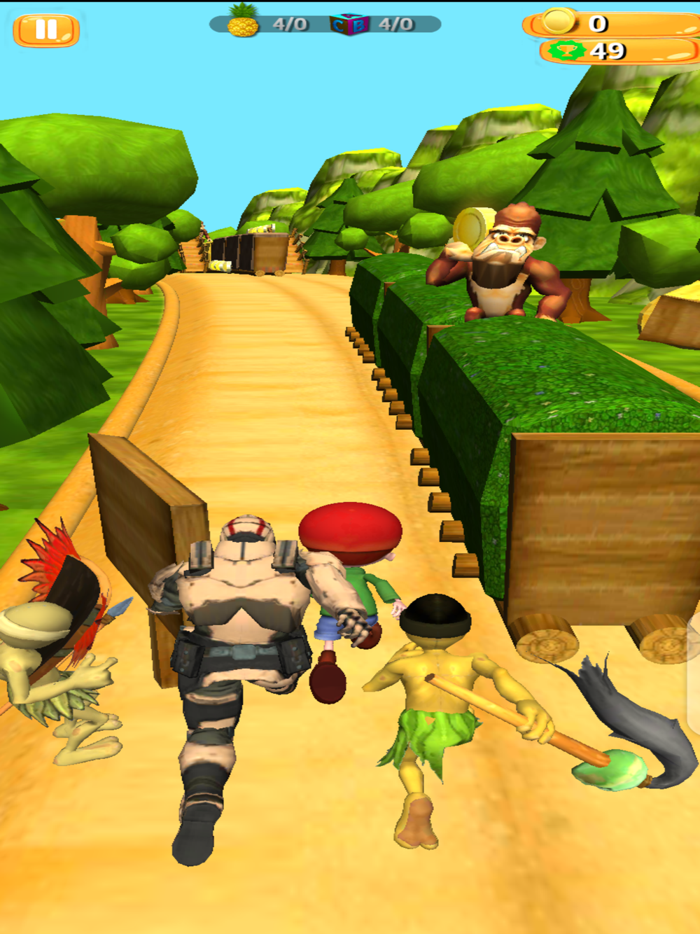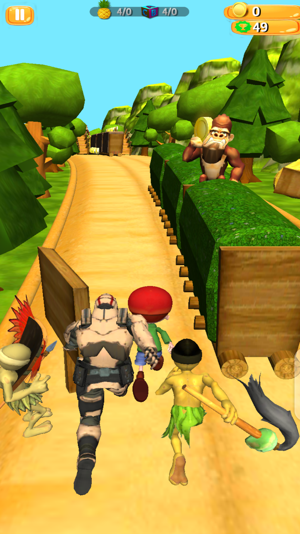 Run in endless jungle environment and collect the coins as much as possible to open new and interesting characters!