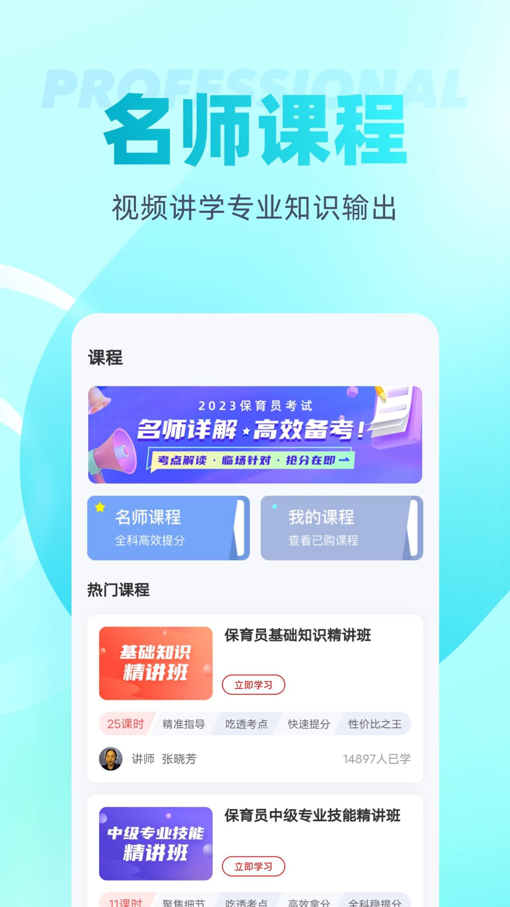 保育员题库内含考点练习,全国通用卷以及地区卷模拟练习,以及按照固定考试比重的随机式的抽题的真题考场,成绩单实时记录考试数据,一点一滴的反馈考生近期学习状态以及自我正确率的提升,大大的给予考生通过考试的信心。