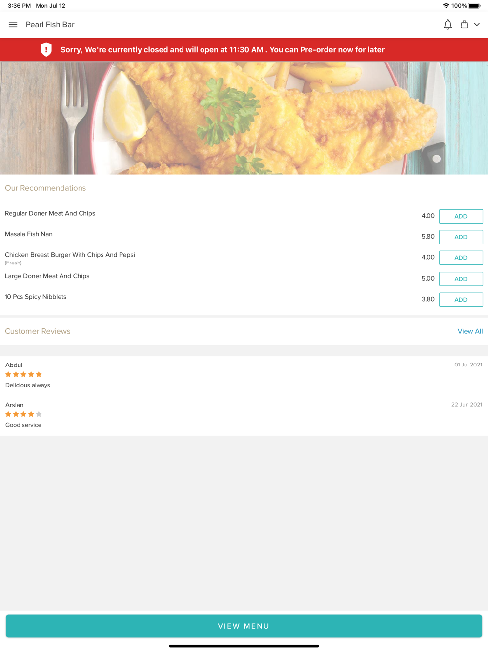 Pearl Fish Bar in Palfrey will always be offering great food at affordable prices. Please feel free to browse our new app and place your order online. Remember to check our new online ordering site to get up to date prices and exclusive special offers, limited to our online customers only! Thank you for visiting Pearl Fish Bar in Palfrey. We hope you enjoy our online ordering website and your food.
