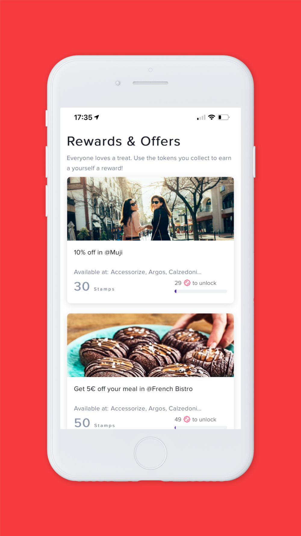 We use a mix of your location and you declaring your visits at stores to reward you with points usable for offers and rewards.