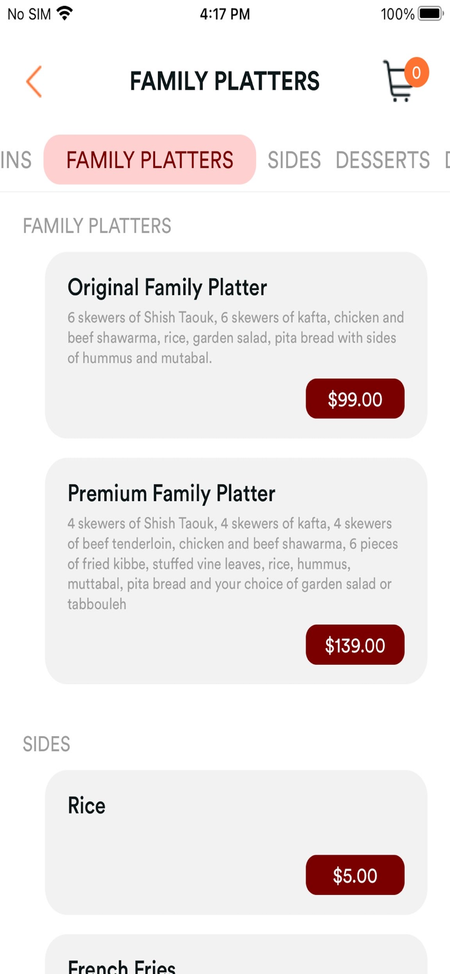 - Access our complete menu (items, prices, photos, descriptions)