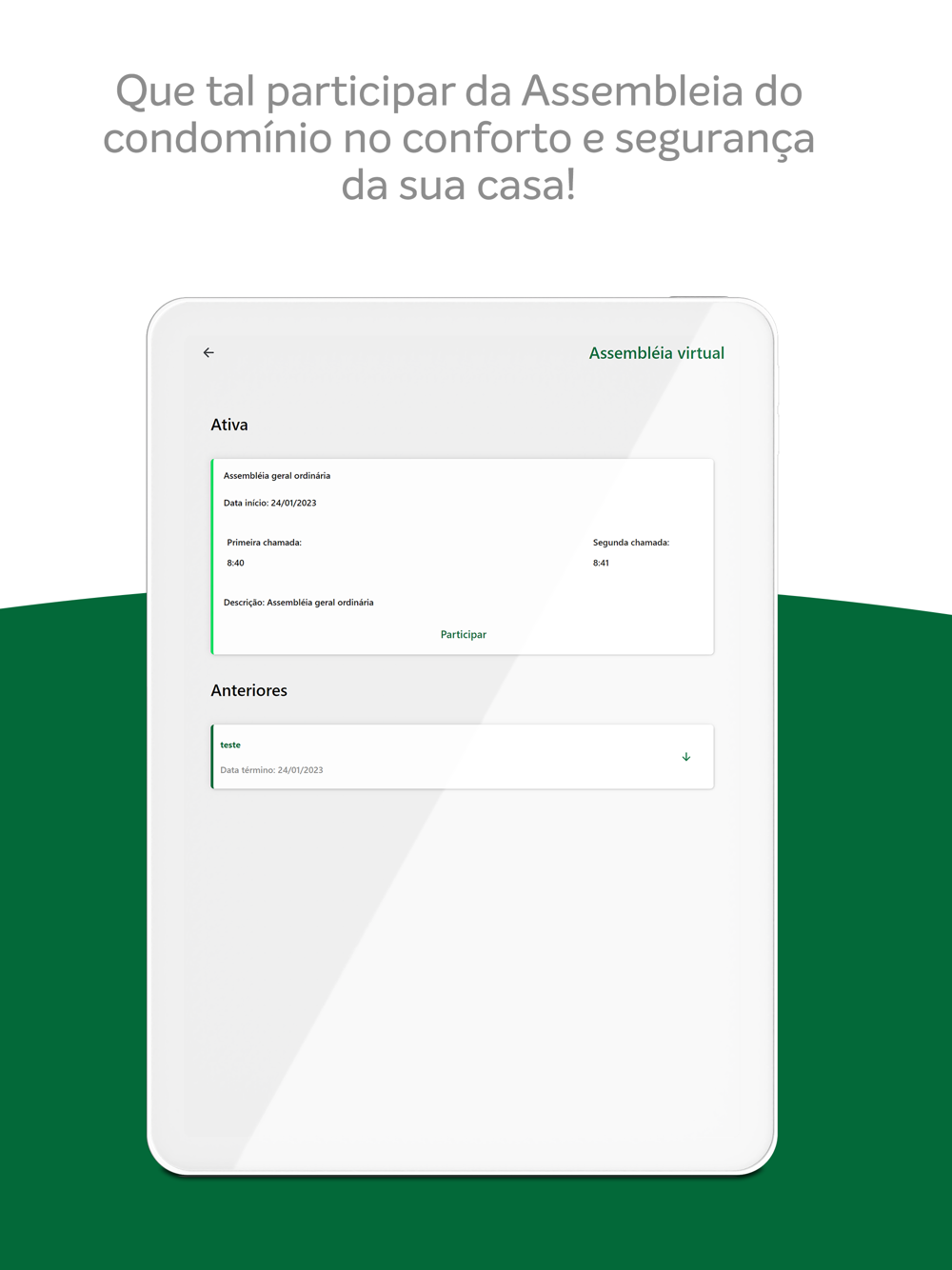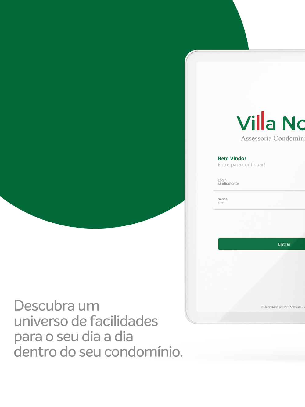 O aplicativo Villa Nova é um ambiente customizado, o qual facilita a comunicação entre os moradores e o síndico através da reserva de espaços comuns, como academia e salão de festas, das assembleias realizadas virtualmente, além de ser um local onde você pode avisar sobre achados e perdidos, realizar enquetes sobre o condomínio e até liberar seus convidados antecipadamente na portaria, sem precisar atender o interfone.