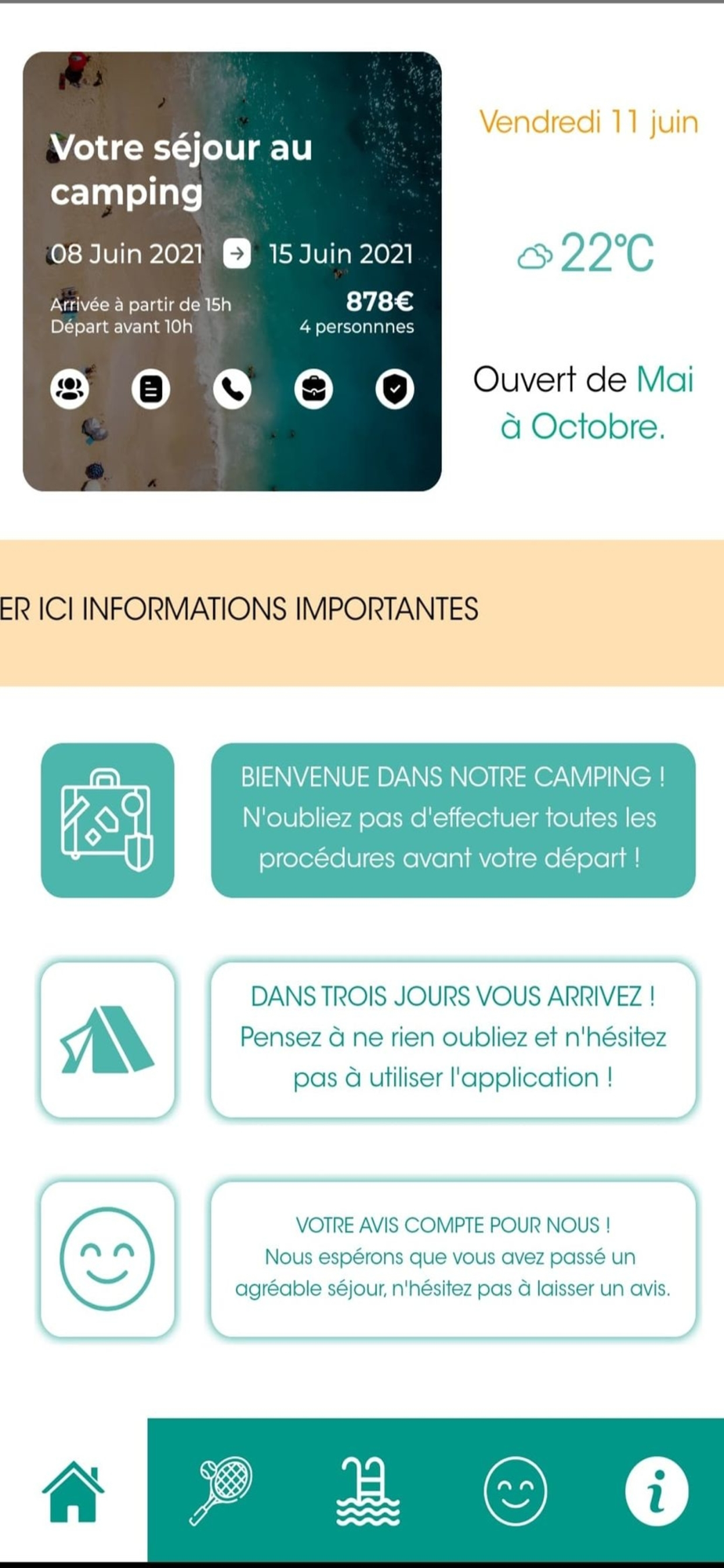 Portail d'informations et de fonctionnalités d'une mairie.Cette application vous permet de vous tenir informé des nouveautés liées à votre camping et d'utiliser les fonctionnalités exclusives en collaboration avec ce dernier.