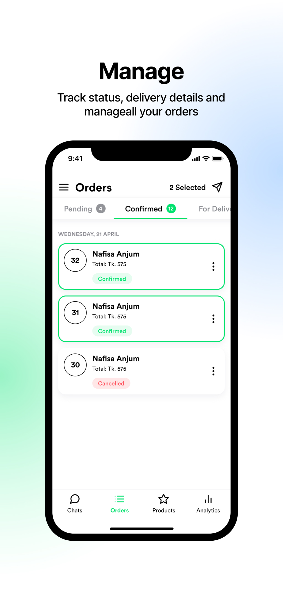 • When your customers send order details(phone, address, etc.) - mark them in chats and create orders.