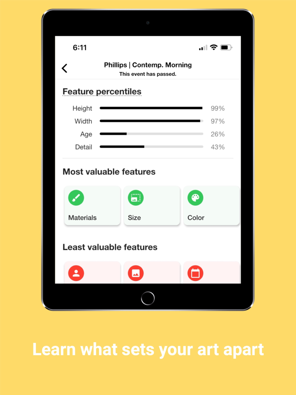 - Receive an alert when undervalued works by your favorite artists hit the market