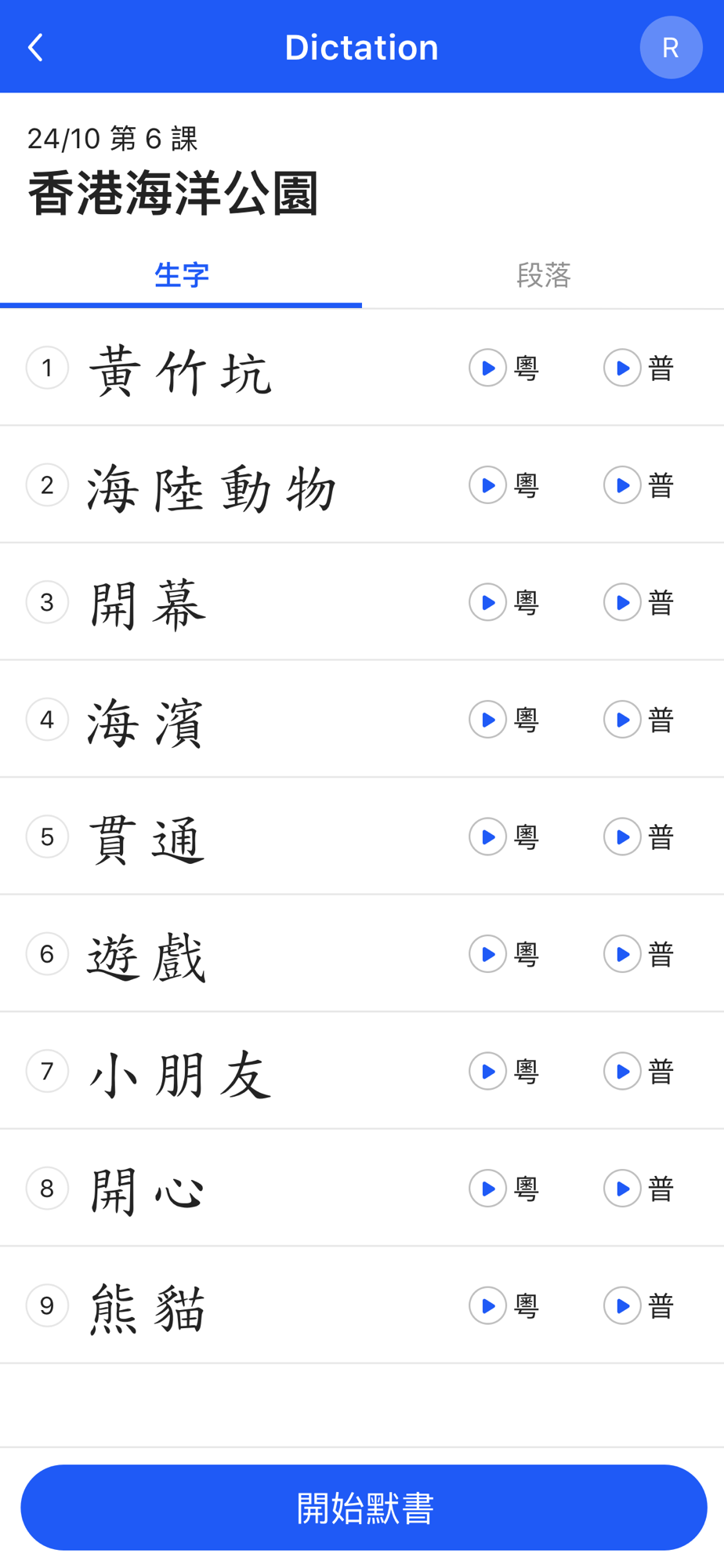 新來港學童: 提供廣東話朗讀,繁體文字筆順。提供英語朗讀,顯示生字音節